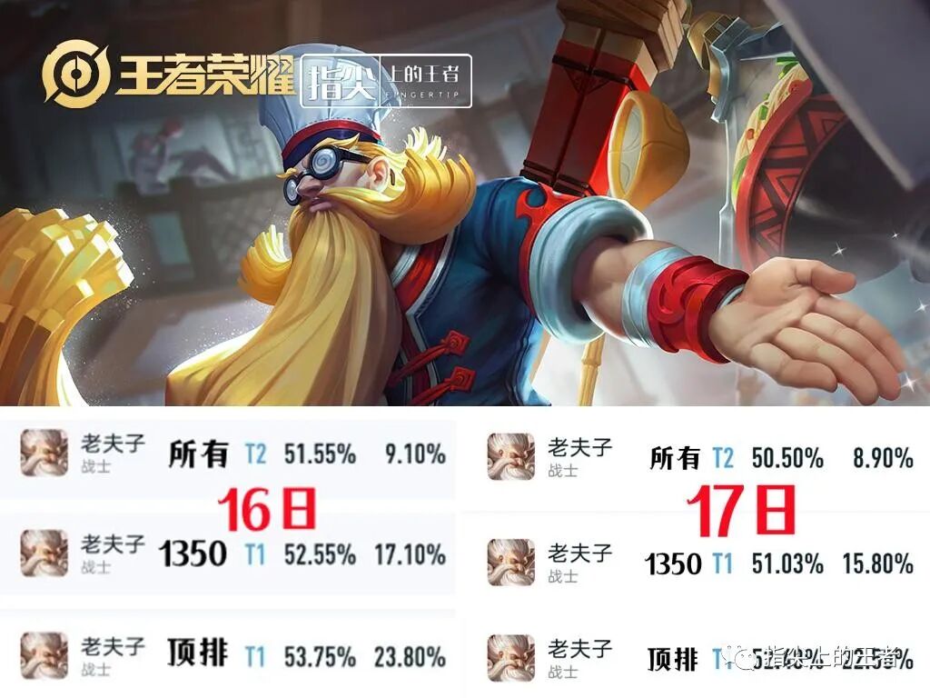 从数据来看,老夫子的胜率有所降低,但降低的幅度很小,并没有特别直观的感受,因此还算能够接受,对于喜欢玩老夫子的玩家还能继续玩。