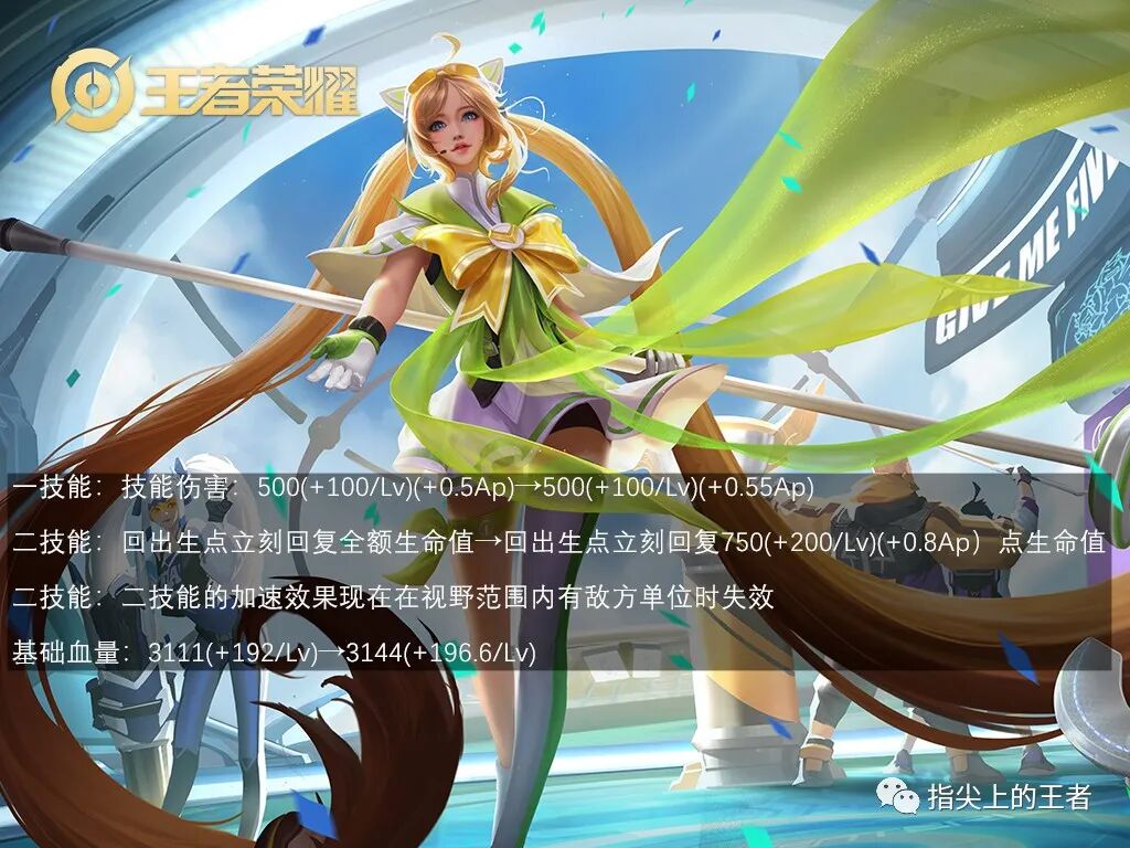 一技能的伤害、基础血量、2技能加速效果在附近有敌方单位时失效依然沿用了8号调整的内容,这个加速效果其实很明显了,乔离组合是最大的受害者,因为阿离在用技能回城,重新赶赴战场之后,可以凭着自己超高的移动速度更好地游离在团战边缘,不论是进攻还是持久战都堪称无解,但是这次将加速效果取消,也就只能在平时续航的时候使用了。