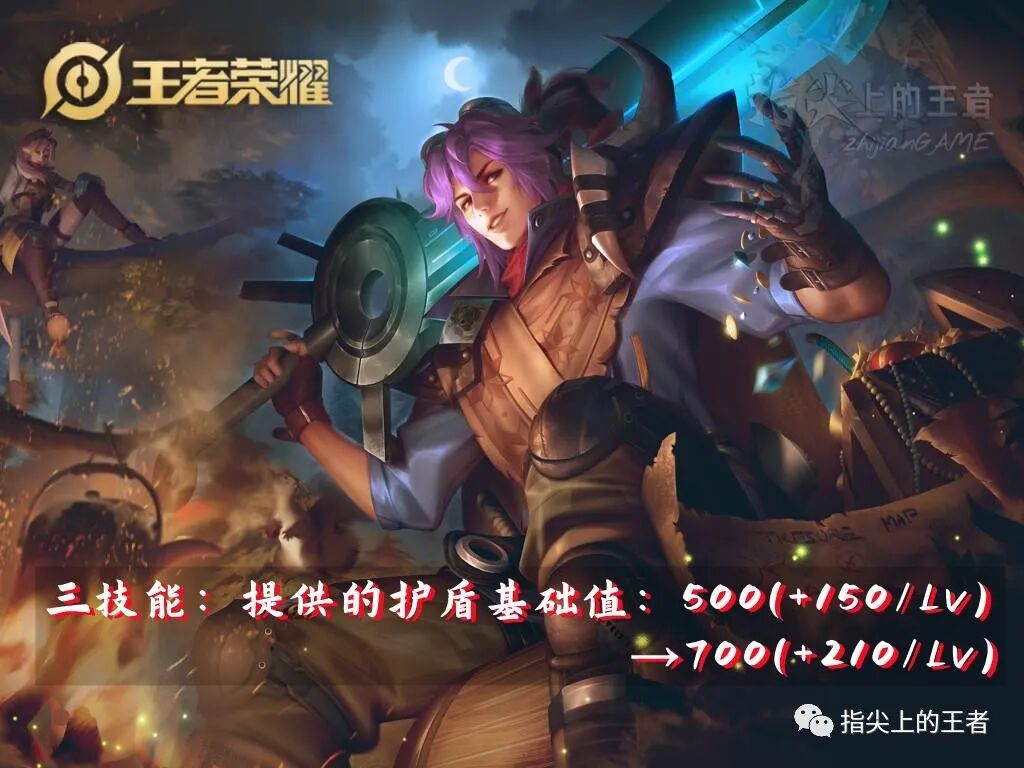 相较于正式服是加强,但对比19日的调整,是削弱了,19日更新,大招护盾的成长值是225,这次回调到了210,就是怕这个护盾值太厚,使得他保人时进攻方完全没办法的问题。
