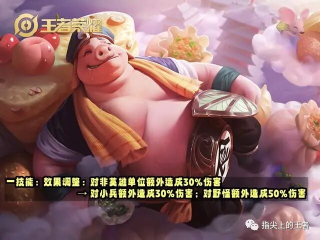 之前一技能的额外伤害,对野怪和兵线都是30%,这次调整增加了20%对野怪的伤害,主要是黄刀虽然不限制清兵速度了,但也就降低了一半对野怪的真伤,所以算是给八戒做了一次单独的平衡吧,其他的边惩英雄就没了这个服气,八戒算是官宣的边惩英雄了。