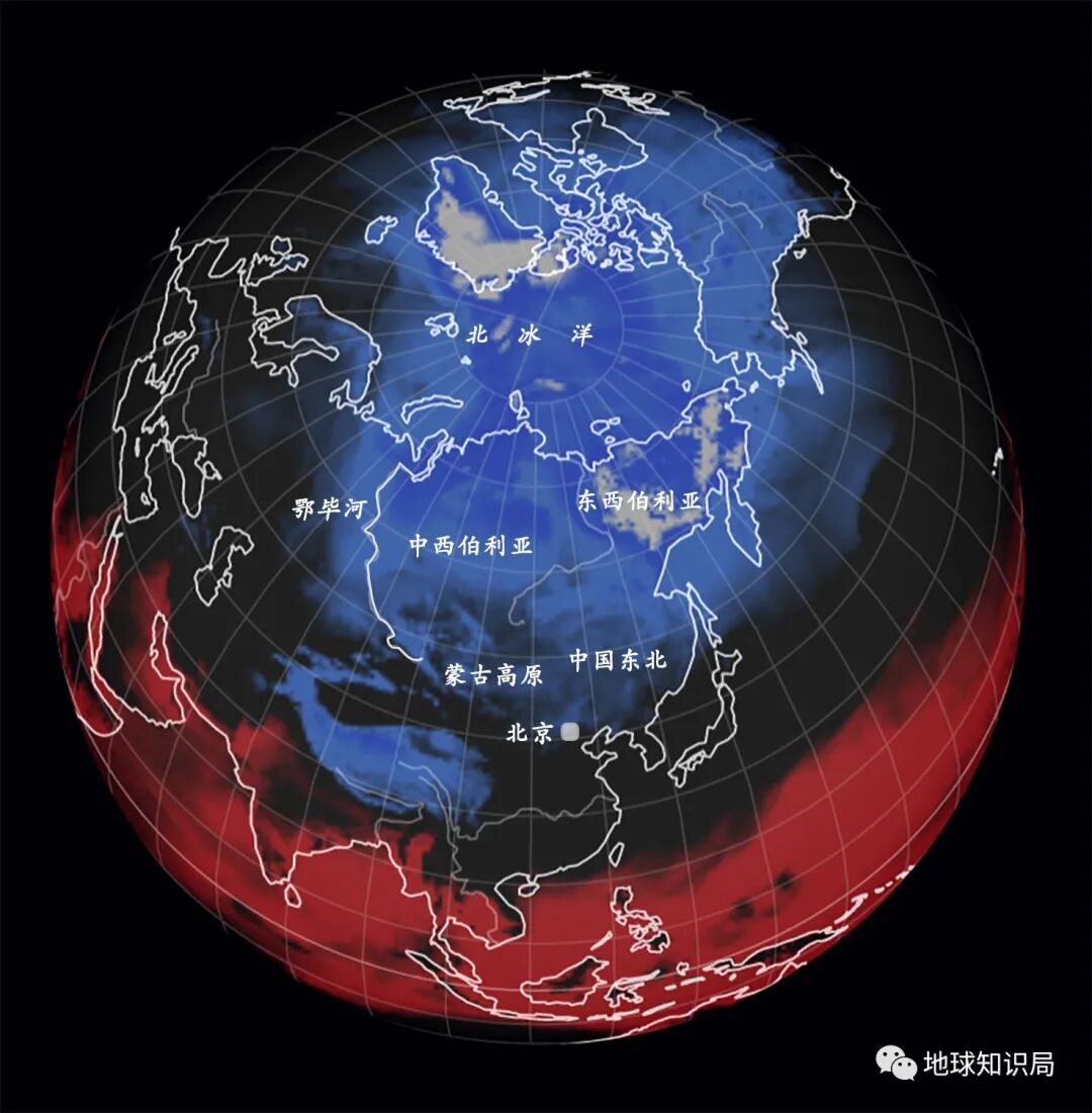大量堆积在西伯利亚的冷空气