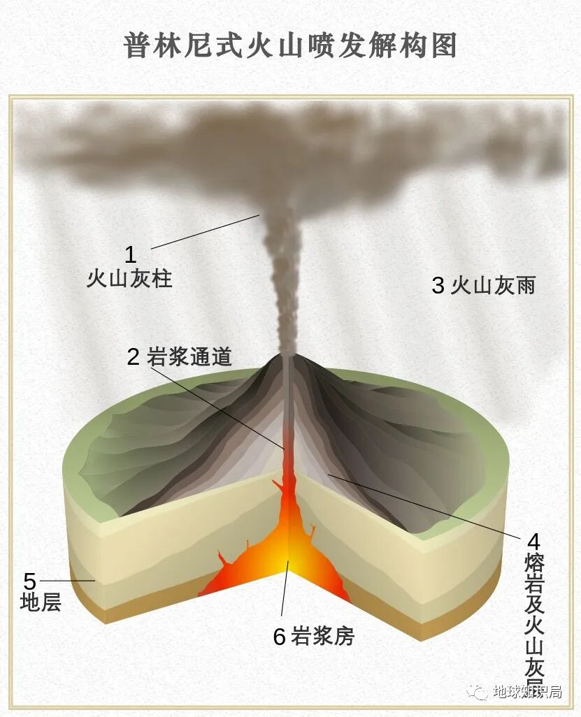 在众多火上喷发的类型中,以普林尼式最为猛烈。相比于其他喷发形式,普林尼式火山喷发产生的火山气体和火山灰可达到平流层高度,且喷发中也会产生大量浮岩,发生强烈的气体爆发。此次在汤加喷发的火山,也属该形式。