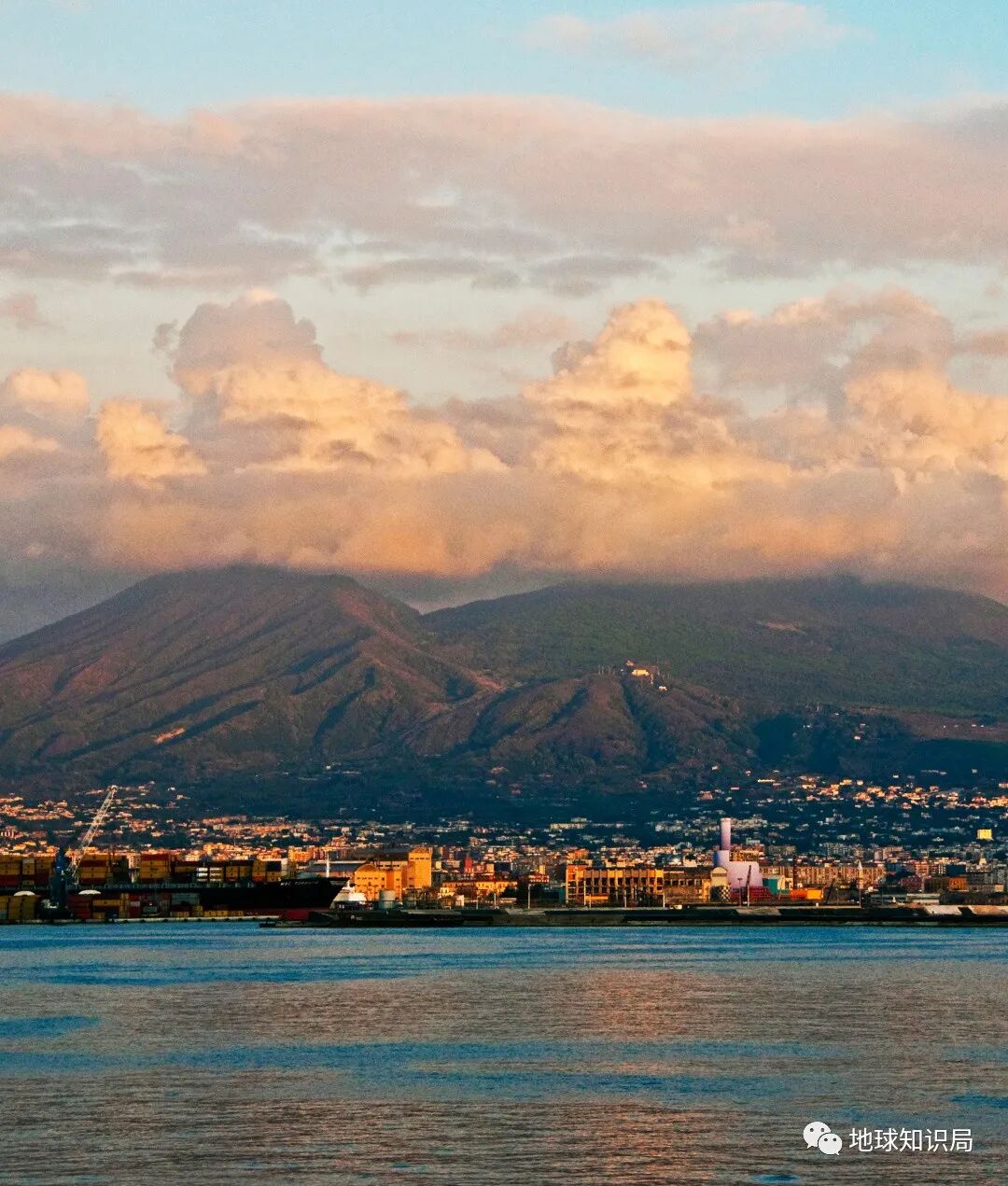 隔着那不勒斯湾望去,历经千年依旧巍峨的维苏威