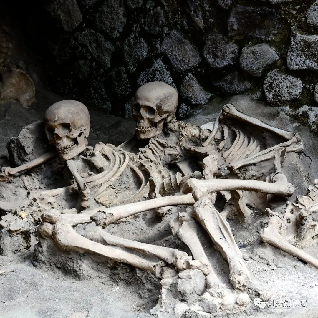 赫库兰尼姆城址的人们直接遭受岩浆的灼蚀,只留下了森森白骨堆