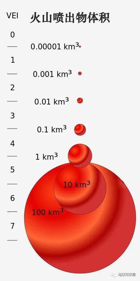 火山爆发等级每升一级,喷发物总体积就乘以10倍