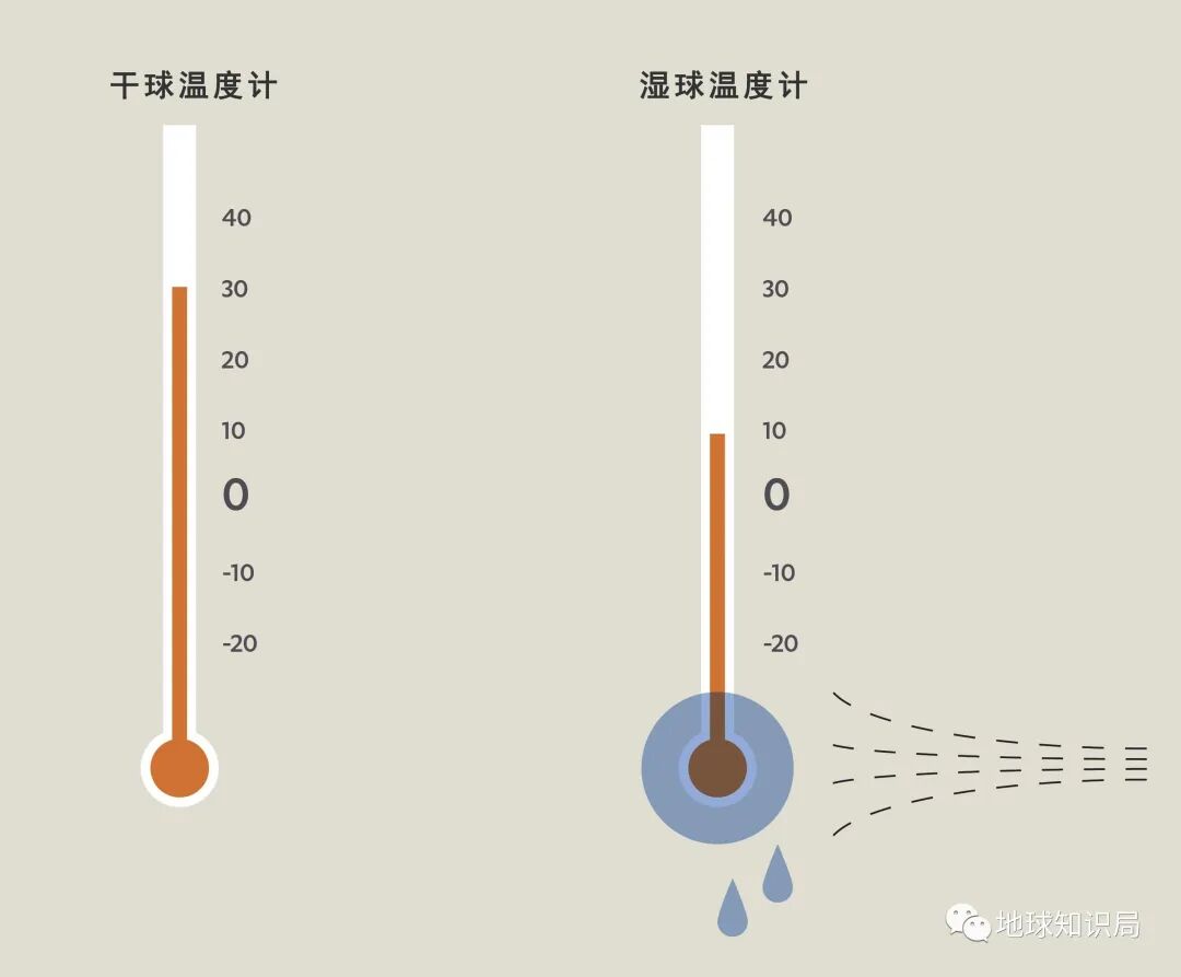 我们在天气预报中听到的、用温度表直接测得的气温,实际上为干球温度,并不能完全体现出人们对温度的实际感受。在气象学中,有“湿球温度”这样一个概念,它表示的是当前环境中仅通过蒸发水分所能达到的最低温度,可以通过湿球温度计测得。