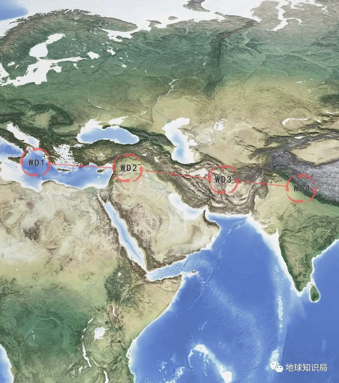 此后,西部扰动随着南支的西风急流进入印度西北部的平原后,继续向东和东北方向移动,降水可以从西向东扫过整个恒河平原。高空南支西风槽前的辐散作用,更有利于地面低压系统的发展,再加之高大地形的抬升,使得喜马拉雅山一带产生降雪天气。