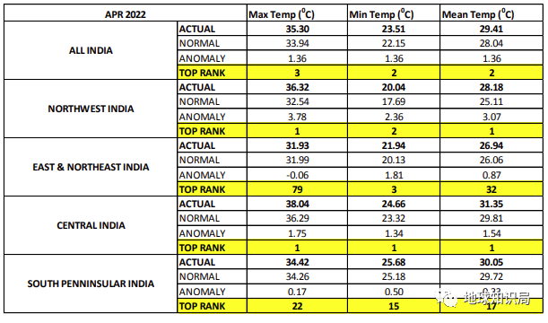 同样,印度西北部28.18ºC和中部31.35ºC的4月平均气温,也打破了2010年4月两地27.79ºC和31.10ºC的记录,成为两个区域所经历过的最热4月。