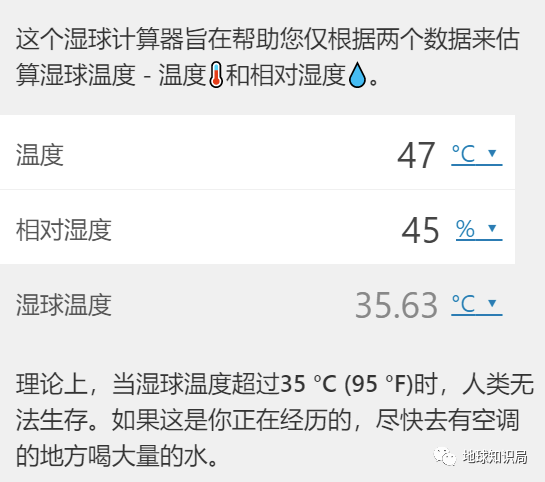 基于生理学原理,人体的皮肤平均温度接近35 ℃,高于这个阈值的湿球温度将会阻止人体的散热过程,即使处于良好通风条件下的健康人,也可能会在六小时内中暑甚至死亡。