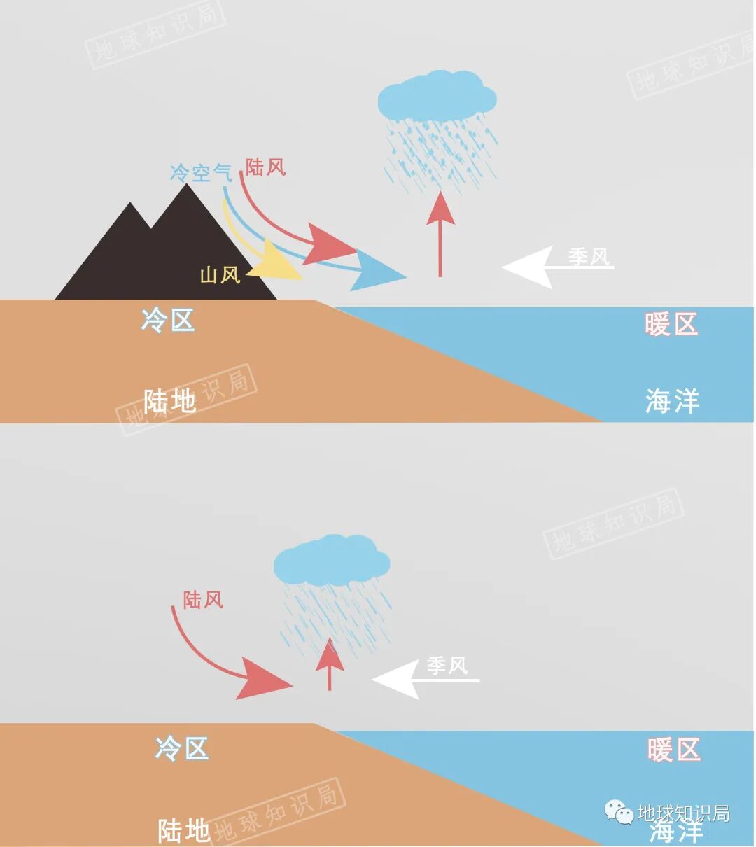 龙舟水的成因与南海夏季风活动密切相关,南海夏季风一般于5月中旬爆发北上,由于其来自热带海洋,表现为密度较轻且富含能量的暖湿气团,其本身性质就不稳定,遇到合适的条件,比如南岭等复杂地形的强迫垂直抬升运动、海陆风导致的局部辐合抬升,便可以触发不稳定能量的释放。