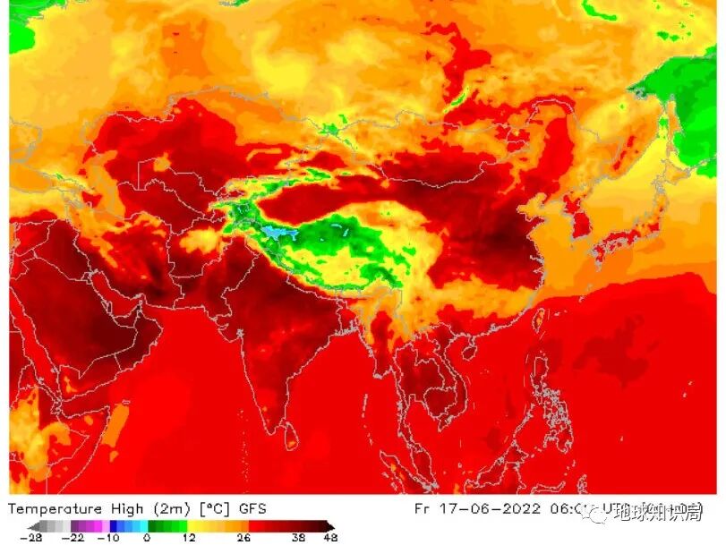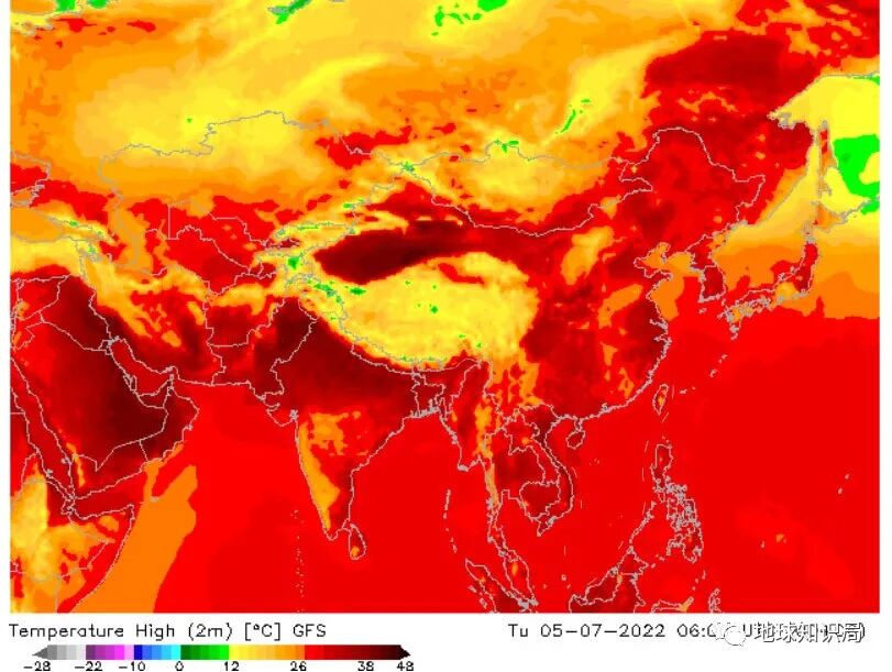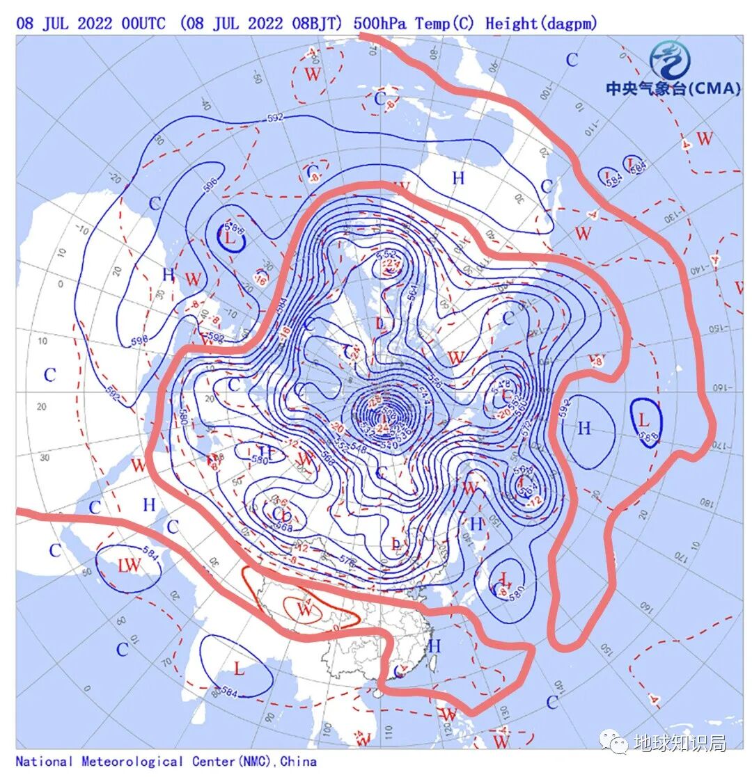 我们再将视野放大,会发现过去一个多月内,北半球是如此的炎热。