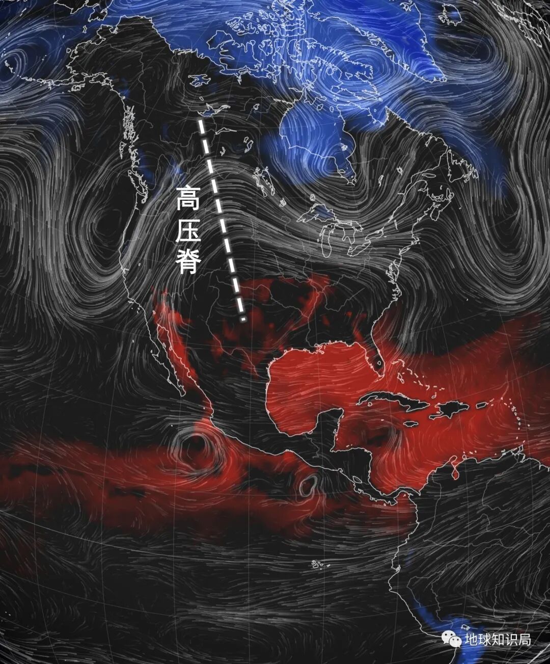 可以看到西风带在北美和西欧附近形成的高压脊▼