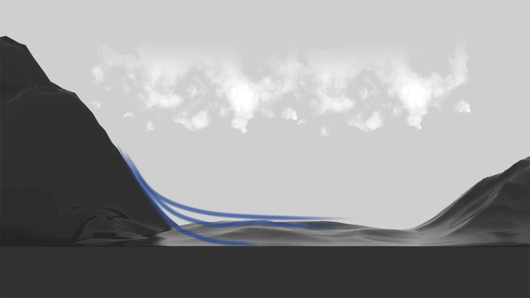使背风面形成雨影,也称为“干坡”(图:wiki)▼