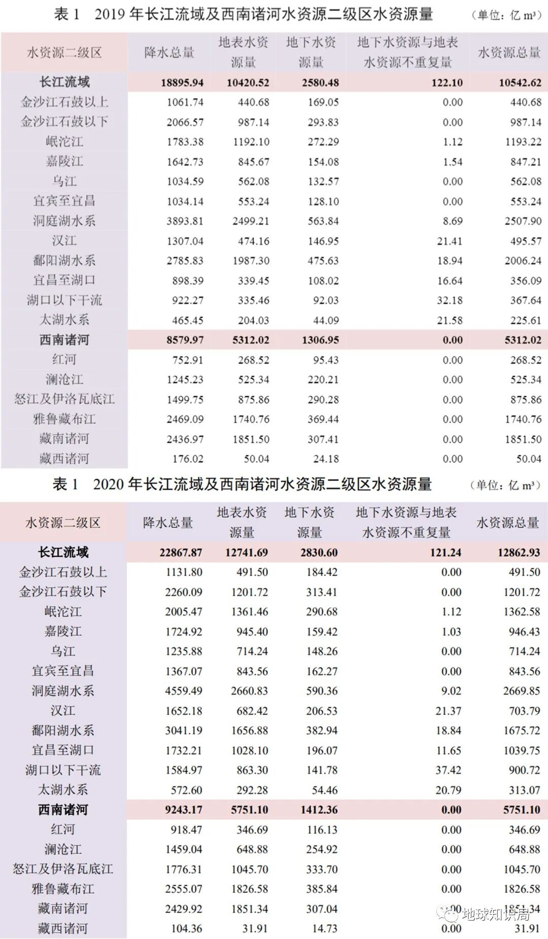 1.长江水利委员会:《长江流域及西南诸河水资源公报》;