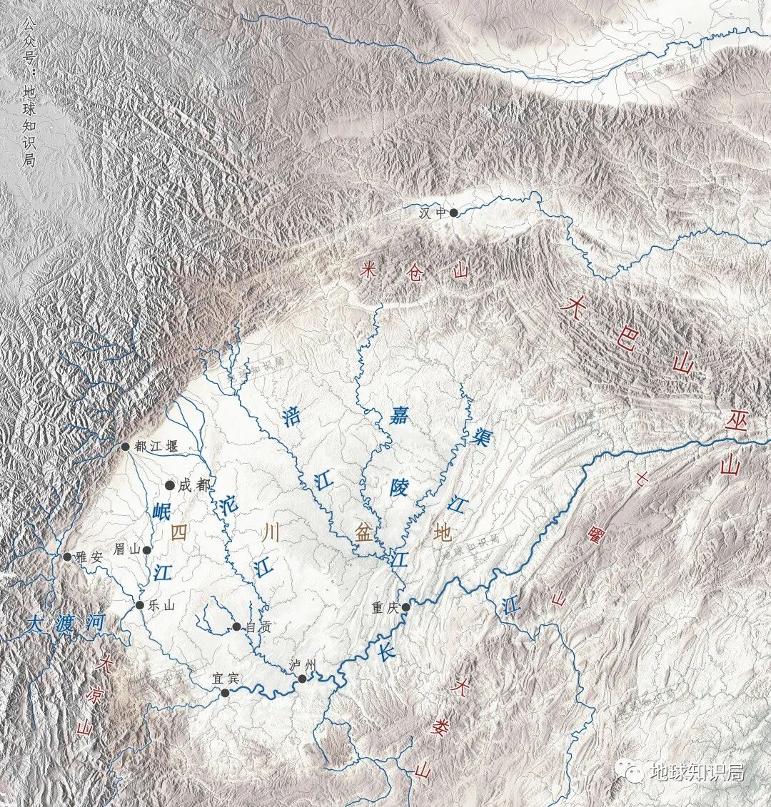 近期重庆媒体时常报道几近干涸的嘉陵江,是长江的第三大支流。不同于岷江的是,嘉陵江流域位于大巴山和巫山山脉的西北面,恰好是东南季风的背风坡,属于“雨影”地带,降水量与四川盆地周边地其他区相比则相对较小,年平均降水量通常不足1000毫米。