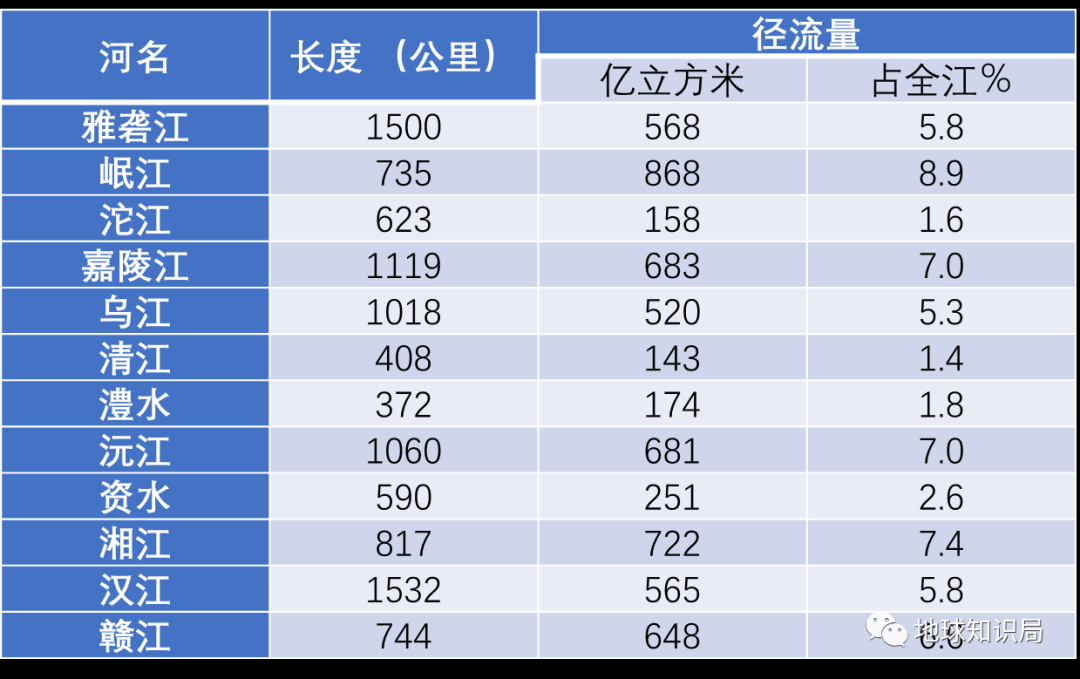 从长江水量的空间分布上来看,长江80%的入海水量,来自仅占长江流程28%的雅砻江河口至鄱阳湖口段。虽然此段流程不及长江全长的三分之一,但是这里却汇集着给长江带来丰富水量的一众支流。