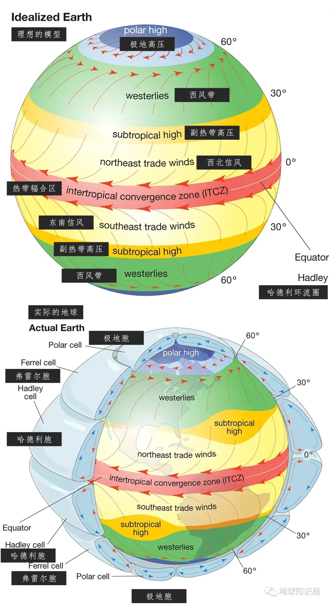 实际上的气象带并不是均匀分布在地球表面的 ▼