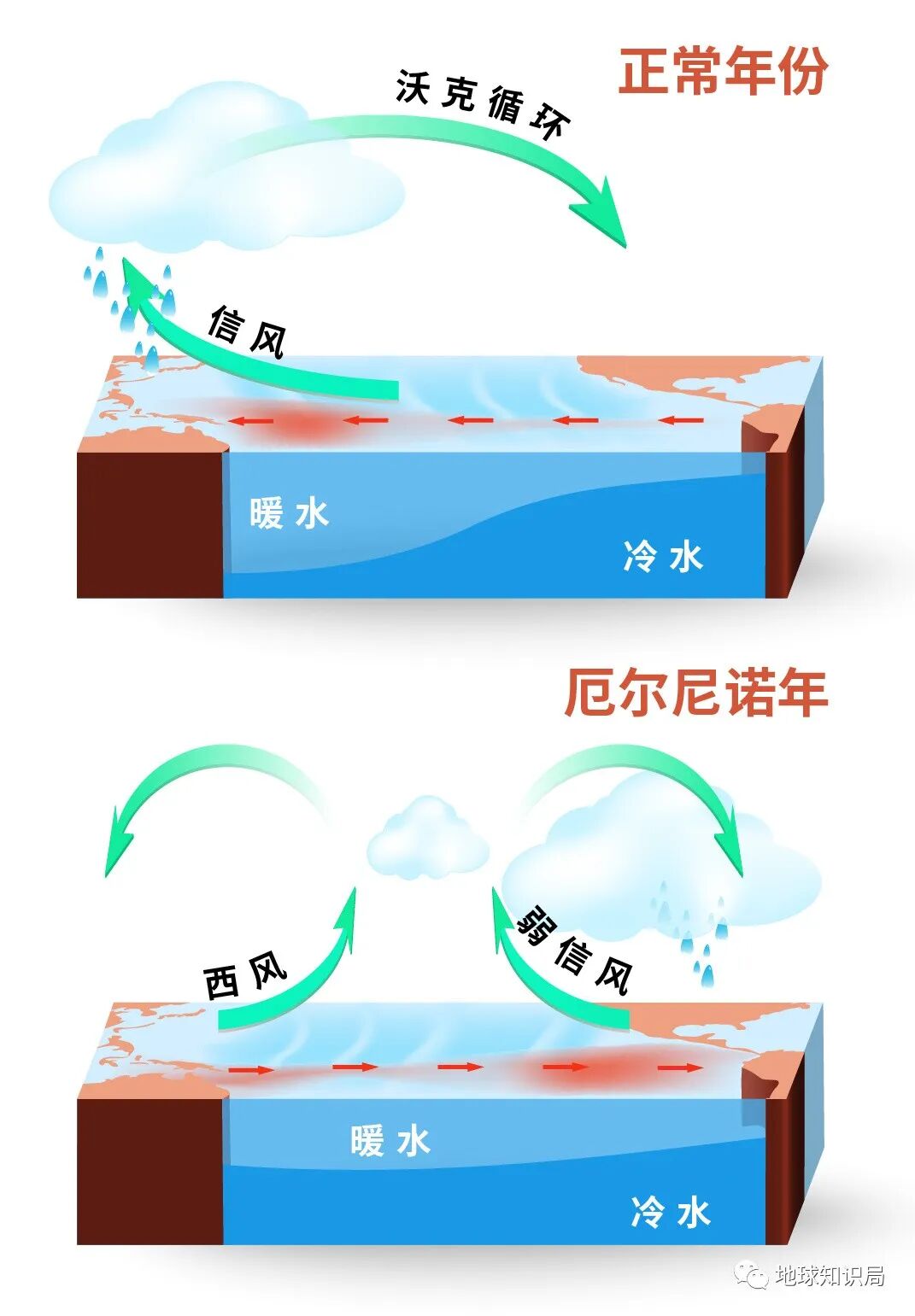 在正常情况下,秘鲁和厄瓜多尔附近的东太平洋海域海水温度并不高。但在一些年份,近海水温度会有持续异常升高和降低的情况,从而对洋流产生影响,造成地区极端干旱和持续降水的发生。这种异常的环流模式分别被称为厄尔尼诺和拉尼娜。