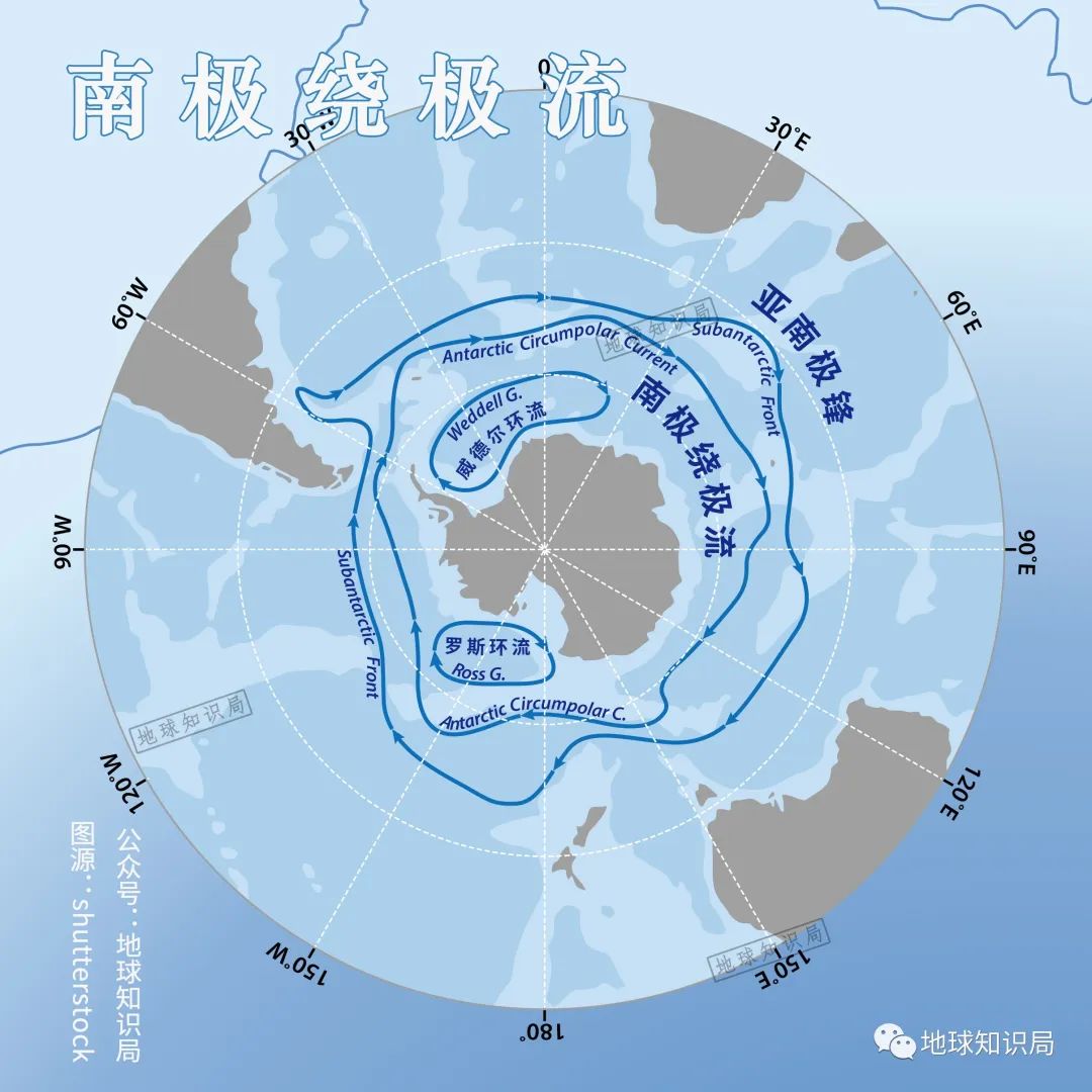 南极绕极流也通过水交换参与着全球洋流循环