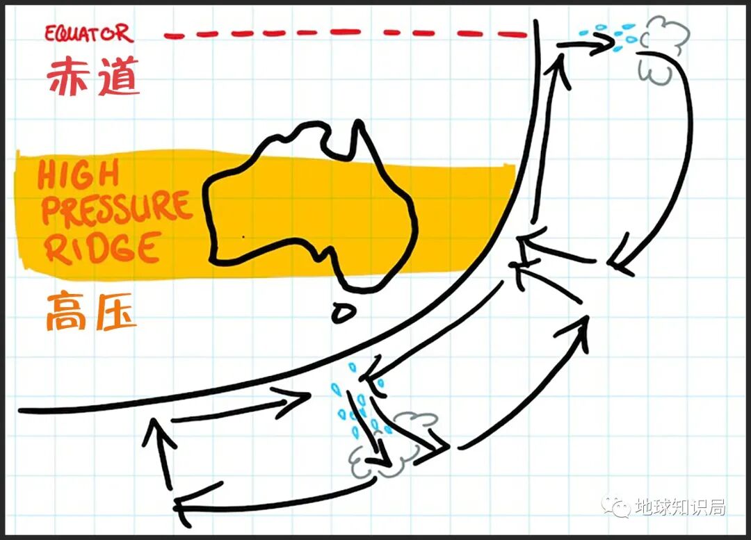 东澳大利亚流输送了大量的暖水南下,再加上澳大利亚东部的大分水岭的抬升阻挡作用,给澳洲东海岸截留了暖流带来的丰沛水汽。