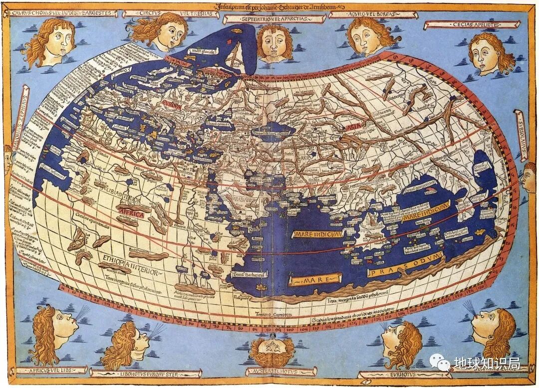 托勒密的世界地图,世界观的想象部分十足