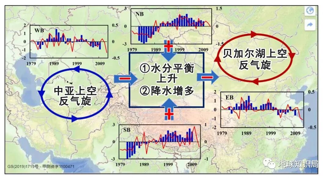 “内”指的是区域内水循环的加强,西北地区气温升高,陆面的蒸散增强,大气中的水蒸气含量增加,自然就要以降水的形式更多地释放。“内”对降水变化的贡献大概占四分之一。