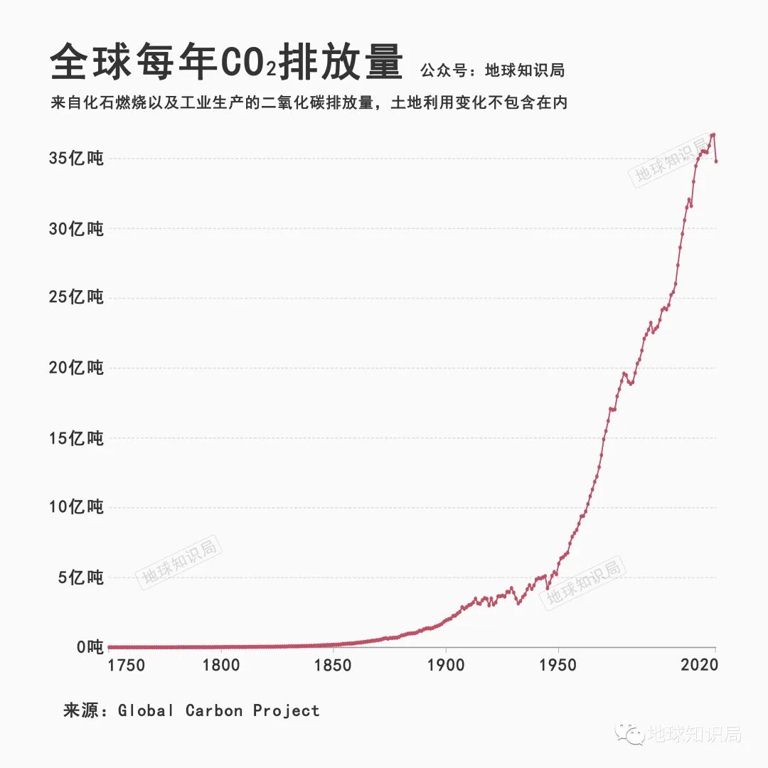全球二氧化碳排放量自工业革命后急速飙升▼