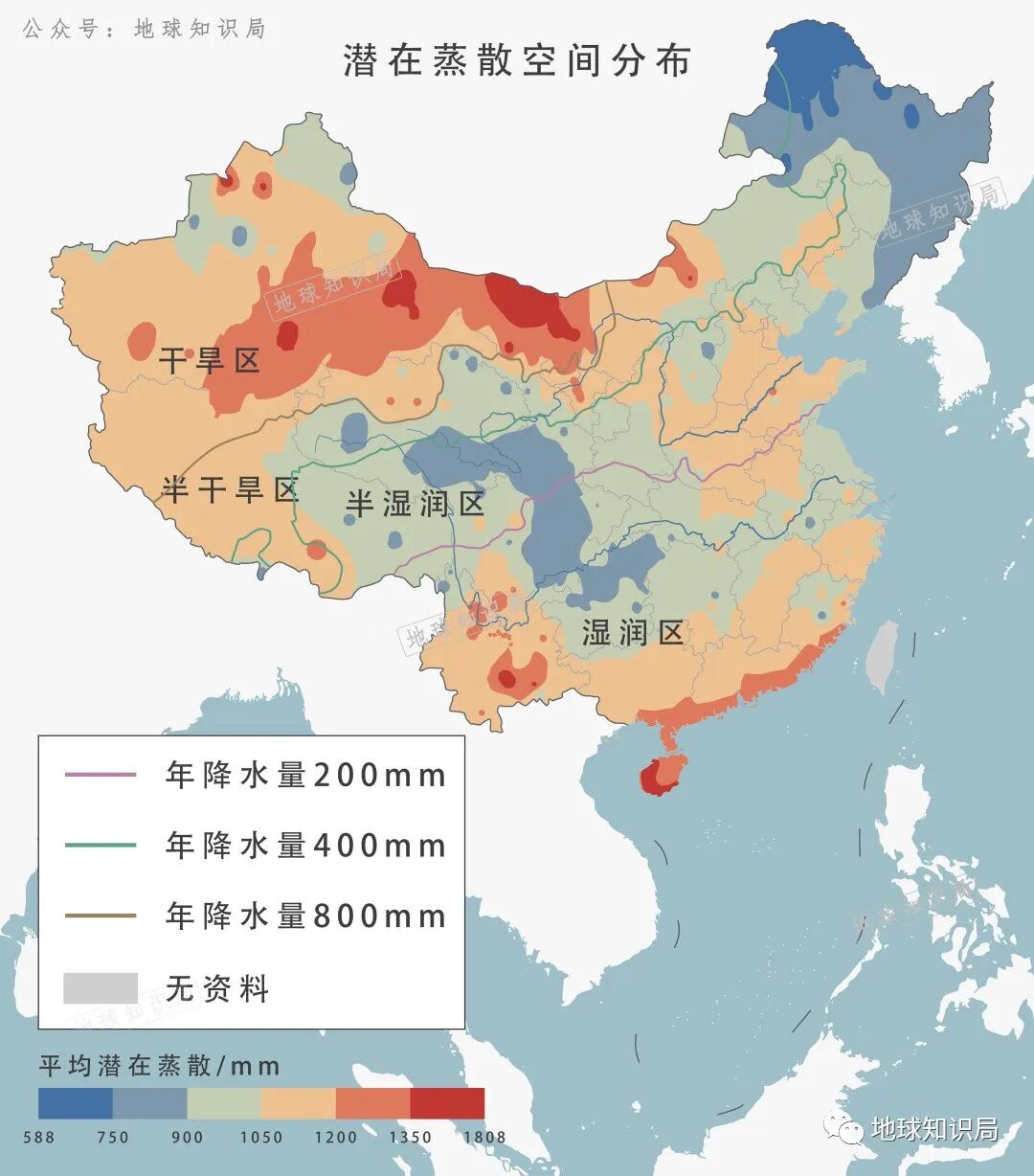 其中的潜在蒸散量,描述了某地实际蒸散量的理论上限,也就是假设土壤保持充分湿润可以蒸散的水分的量。