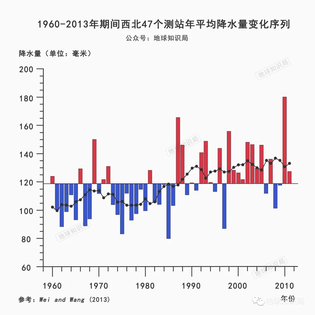 如果考虑到西北地区本身降水稀少,这几十年来降水的变化不可谓不大。