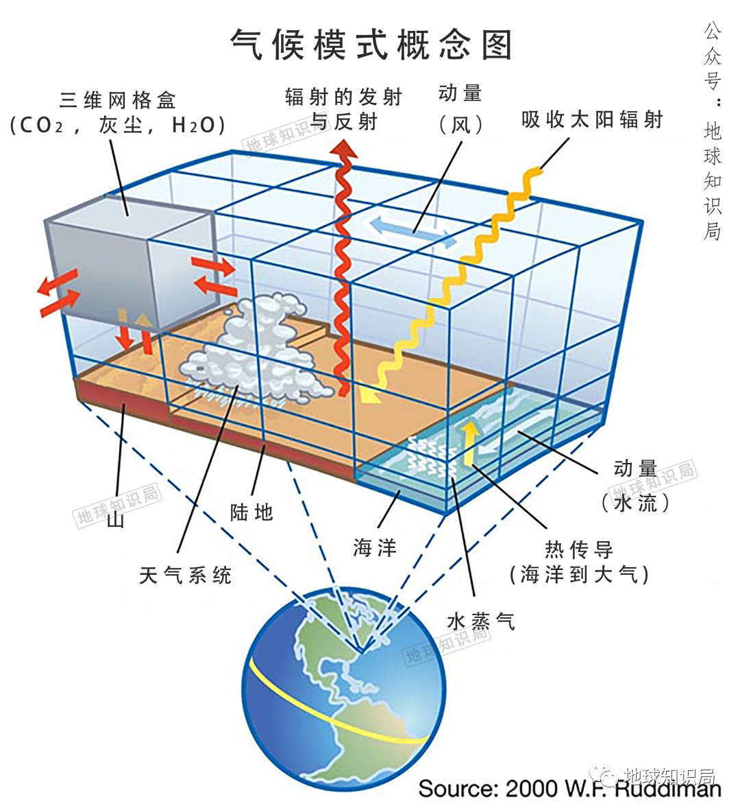 气候模式是运行在计算机上的对地球气候系统的仿真实验室,它将气候系统中重要的过程比如大气和海洋环流、太阳辐射对大气和陆面的加热、大气和陆地之间的能量交换和水分交换等抽象化、数学化和软件化,给气象学家们在虚拟的地球实验室中做气候试验的机会。