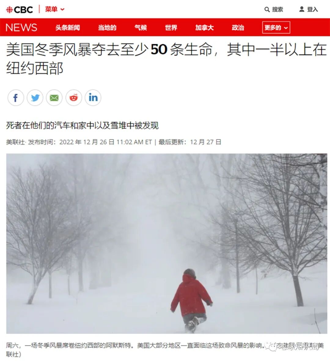 这次超级寒潮给美国带来了巨大的损失,截至12月26日,至少有50人在这场“史诗级暴风雪”中遇难,其中27人、一半以上的死亡发生在纽约西部。