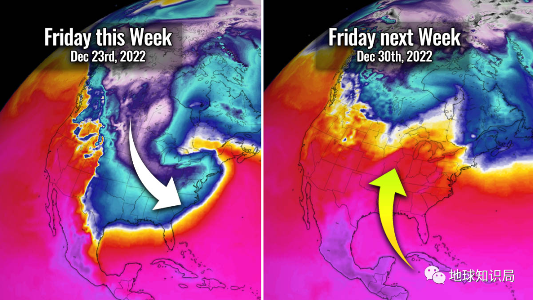 而本月22日,美国国家海洋和大气管理局(NOAA)预测,随着冷高压前端的冷锋将于12月22日至26日自西向东横扫美国,带来严酷的暴风雪和断崖式的降温天气。