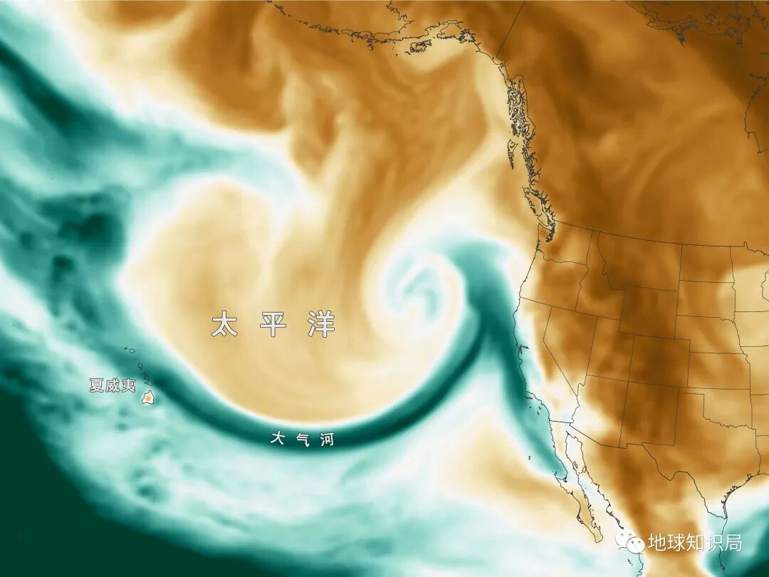 美国人更加关注大气河的原因来自对美国西海岸不安分的“降雨”的担忧。每年冬季,大气河常常连接夏威夷岛附近和美国西海岸,太平洋热带的水蒸气可以沿着大气河直接输送到落基山脉,遇到阻挡后往往引发猛烈地降雨。