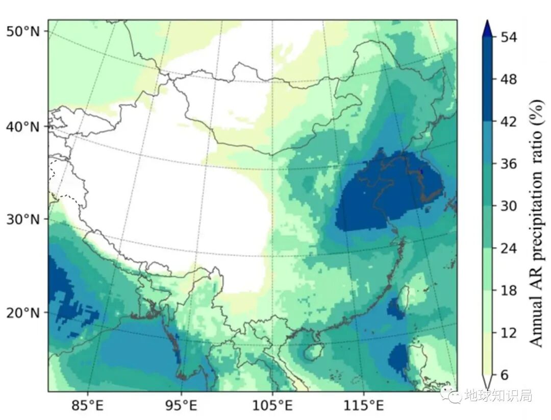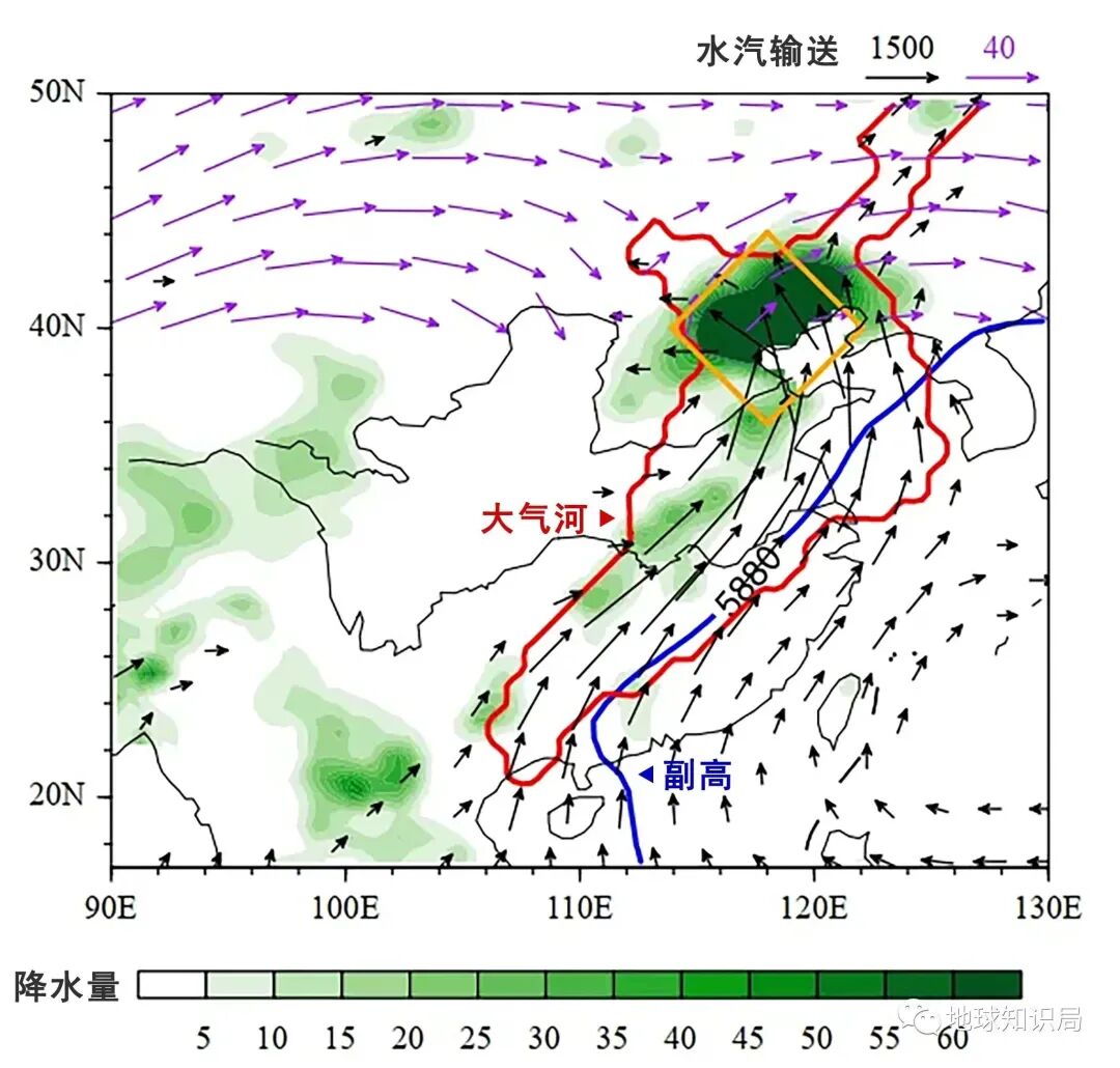 根据历史资料的统计研究表明,在夏季,东部地区全部降水中与大气河有关的降水占到10%-20%,但是如果不计算总降水中的占比,而是计算以暴雨为主的极端降水时,这个占比达到30%-60%。