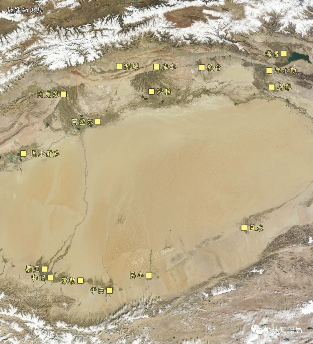 而且北缘的绿洲规模明显比南缘要大(天山的缘故)