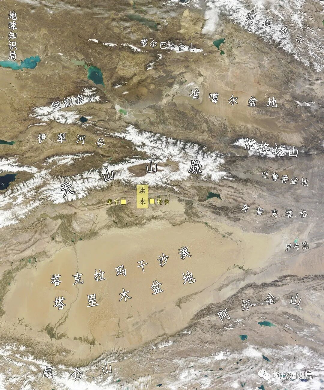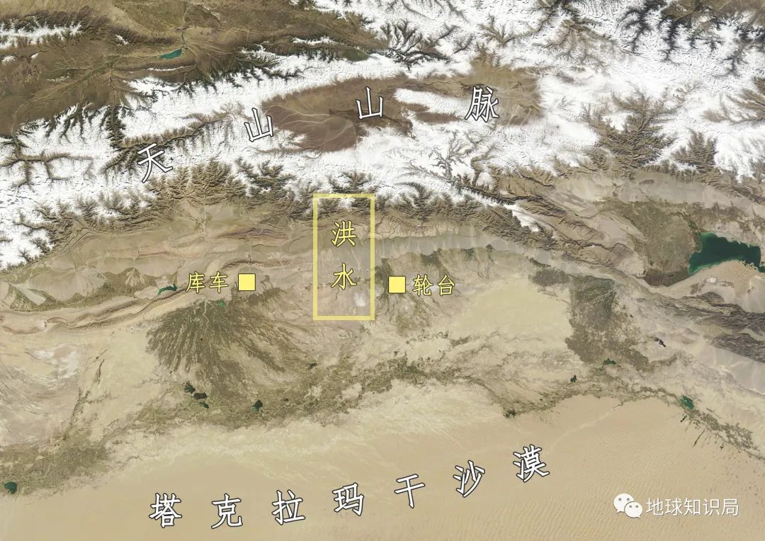这次的洪水出现在库车至轮台的交界区域,位于天山南坡绿洲的荒漠地形区,距离塔克拉玛干沙漠腹地仍有一段距离,并非传闻说的塔克拉玛干沙漠遭遇了洪水,充其量只能算是沙漠北缘地带发生了洪灾。
