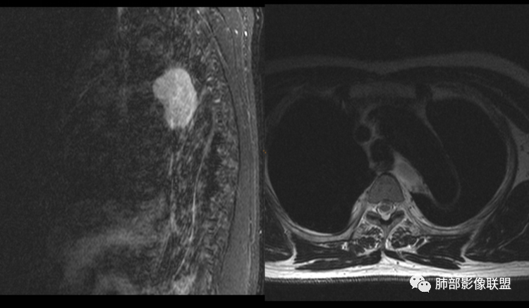 磁共振上显示不是水的信号,考虑神经源性肿瘤。
