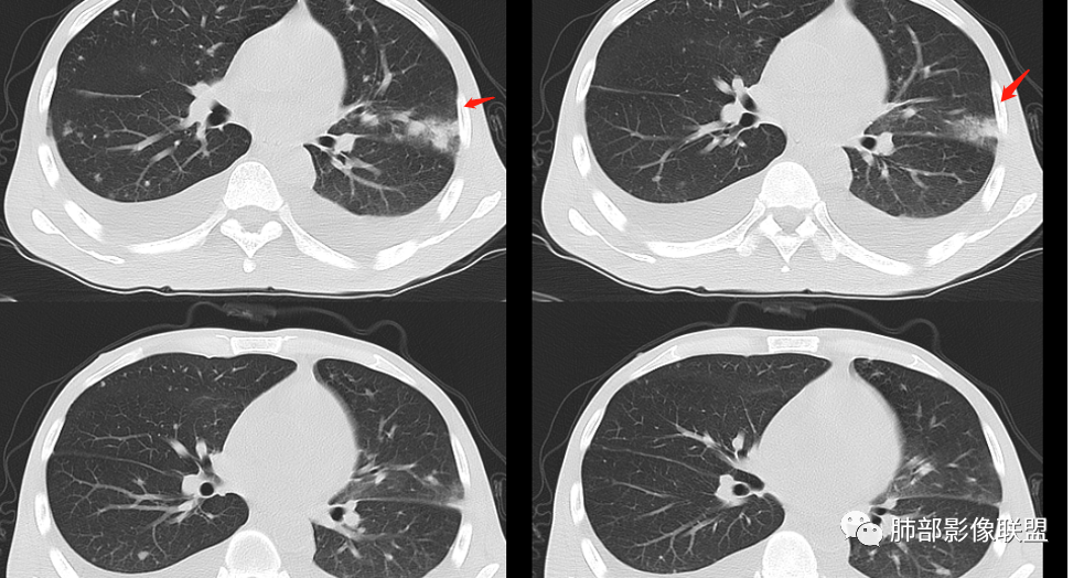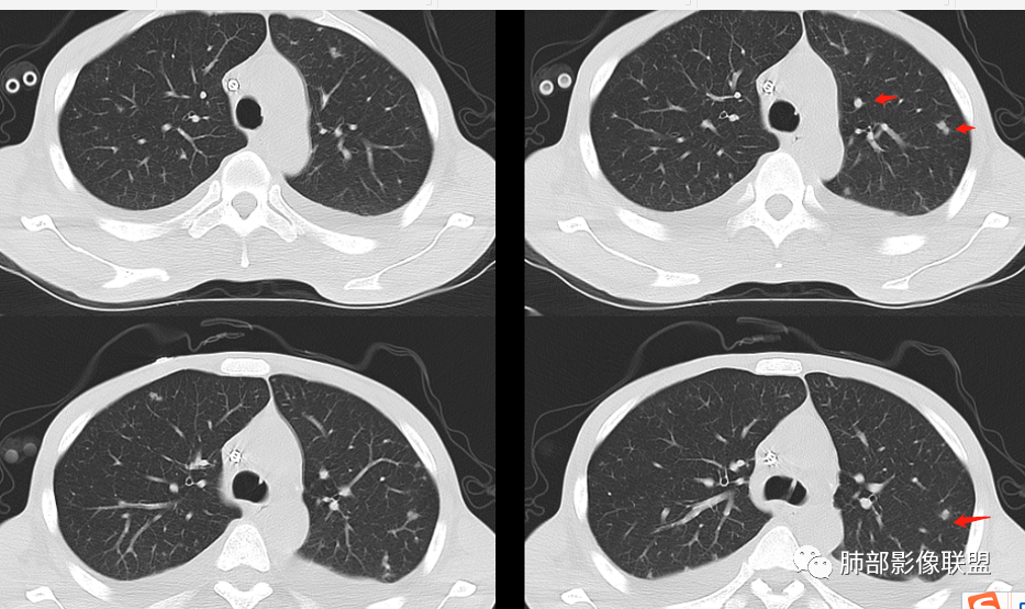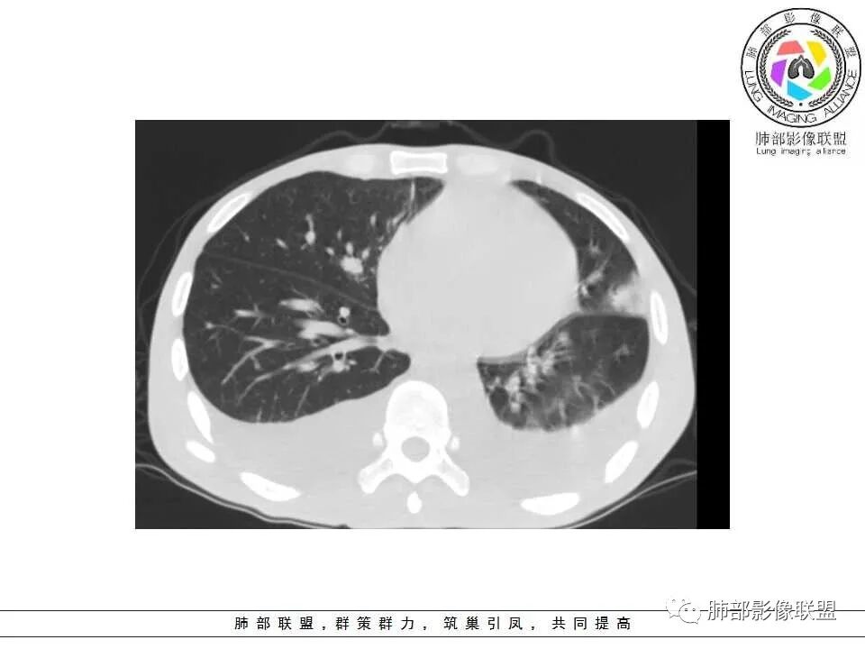 2)病灶大多随机分布,磨玻璃晕等,没有新旧不等,且两个月内出现这样病灶,肺结核的可能性非常小。