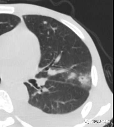 但转移瘤大多为边界清晰、比较规则的结节影,尤其是结肠癌转移,发现时结节还会较大,很少成片,与支气管关系密切者更为鲜见。