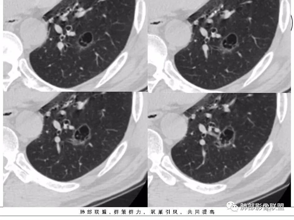 文献参考:望云,刘士远,范丽,等. 含薄壁囊腔周围型肺癌的CT特征及病理基础分析[J]. 中华放射学杂志,2017,(2):96-101