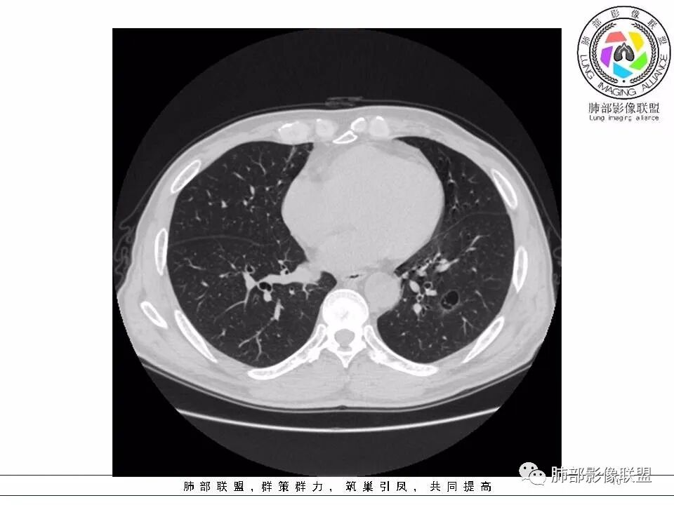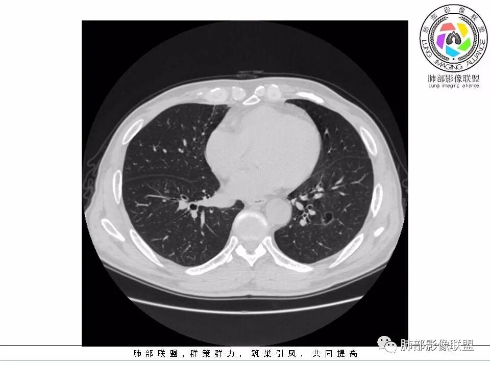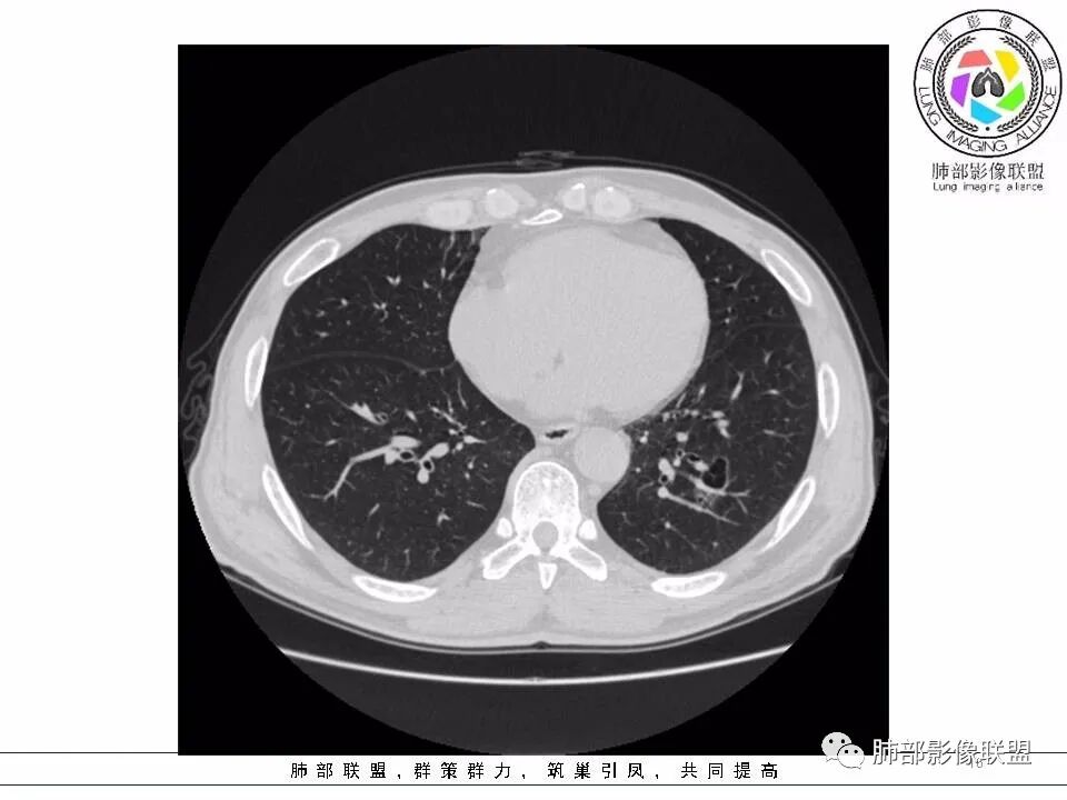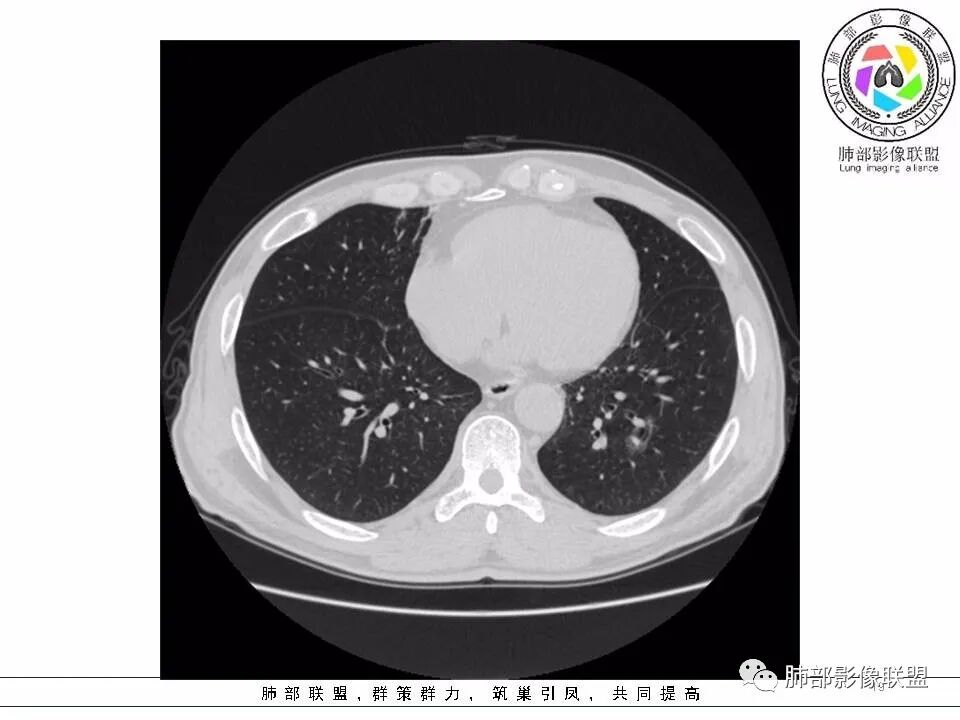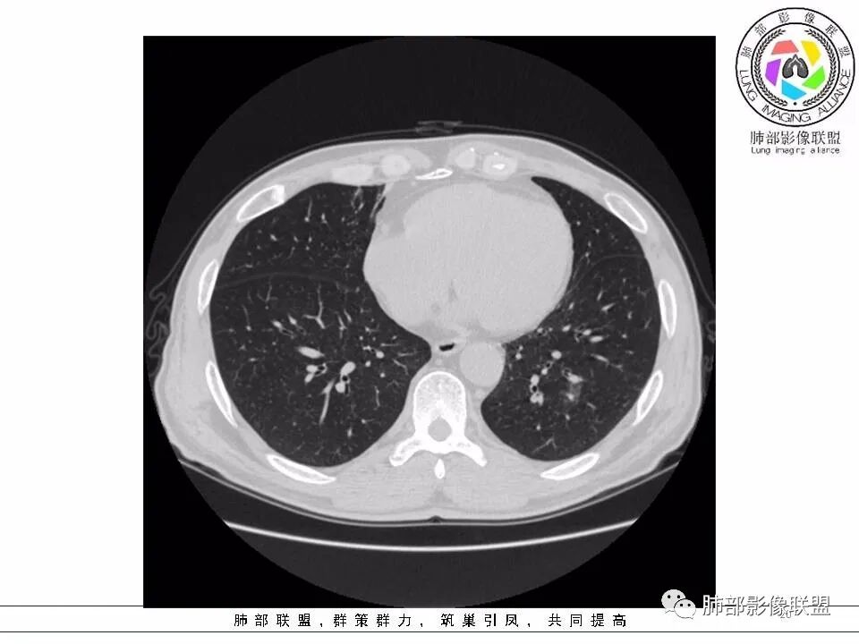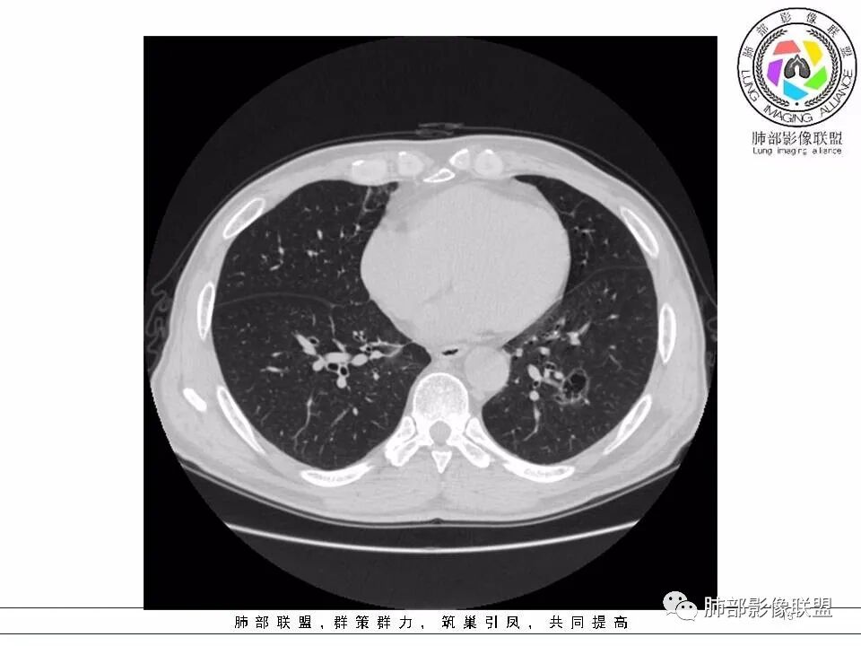 男性,发热,肿瘤标志物不高,影像:左下肺类圆形囊腔,内有丝丝缕缕,周边有渗出,右肺少许条索,第一印象:囊腔型腺癌