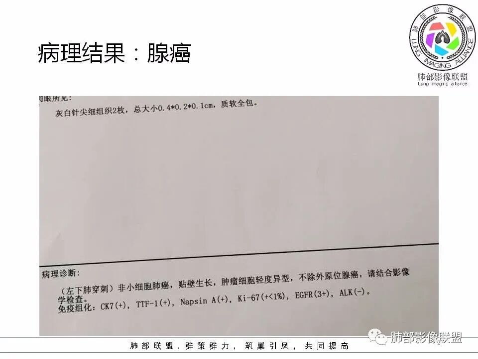 2.临近有边界清楚磨玻璃影,指向腺癌。