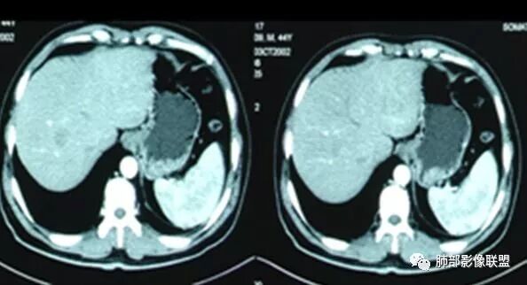 就是比如说肝癌吧,是那种假的包膜,得长得长,然后他把周围的行为包给压破了,形成了一个假包膜,那种假包膜一般会比较厚,再延迟的话会有一个强化,前期的话强化可能比较低,这是它一个它特点,但是像就是血管瘤、囊肿这种,它是真包膜,非常的薄,在CT上是看不到的。但是它的一个作用就是使得它跟周围的分界非常的清楚,但这个病人呢,它分界的有一点不太清楚,里面的密度又不是很像囊肿那种非常低的密度,囊肿里面也可以合并出血、含蛋白的成分,这成分也可以不同,所以有的时候。它会有一种模棱两可的状态,当那个脓肿发展的时候,他的壁没有那么厚的时候。或者是当囊肿,伴有蛋白。