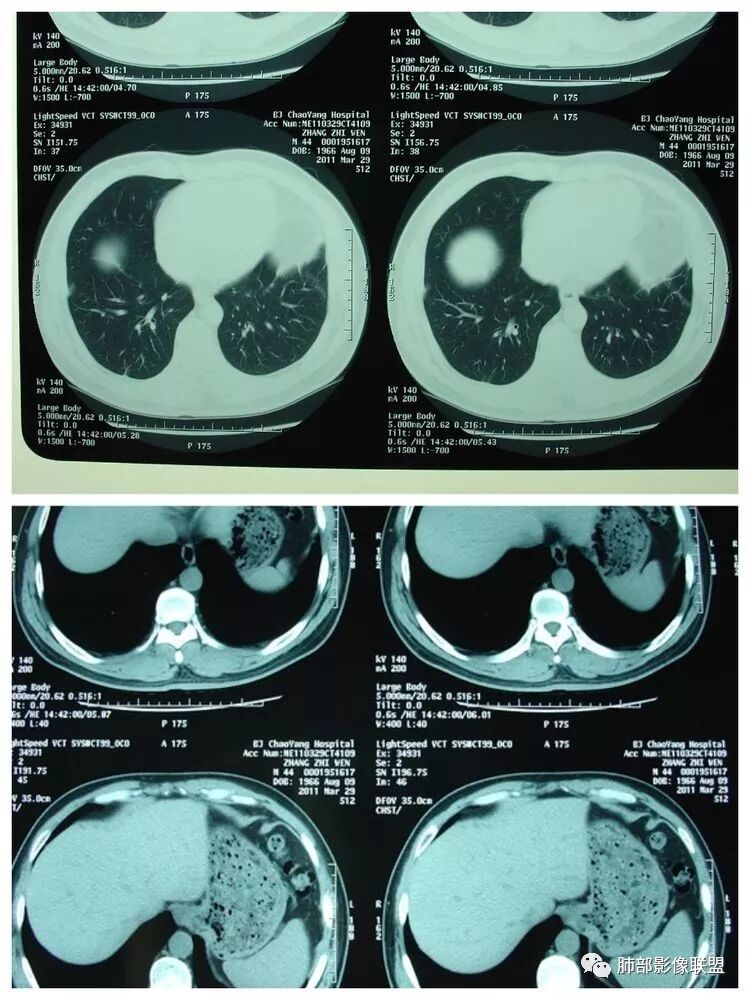 食客:糖尿病史,双肺内病灶外周分布,反晕,考虑感染,毛霉?肺克?红日东升:糖尿病,双肺胸膜下多发肿块、楔形,肝脓肿待排,考虑血播感染,首先考虑毛霉,鉴别肺克。天涯:感染,肺克?初学者:我还以为熊大会说肺克长沟流月去无声:腹部那个是肝脓肿?先明确这个wonderful:腹部是普通囊肿吧?肝脓肿和肝囊肿如何鉴别?