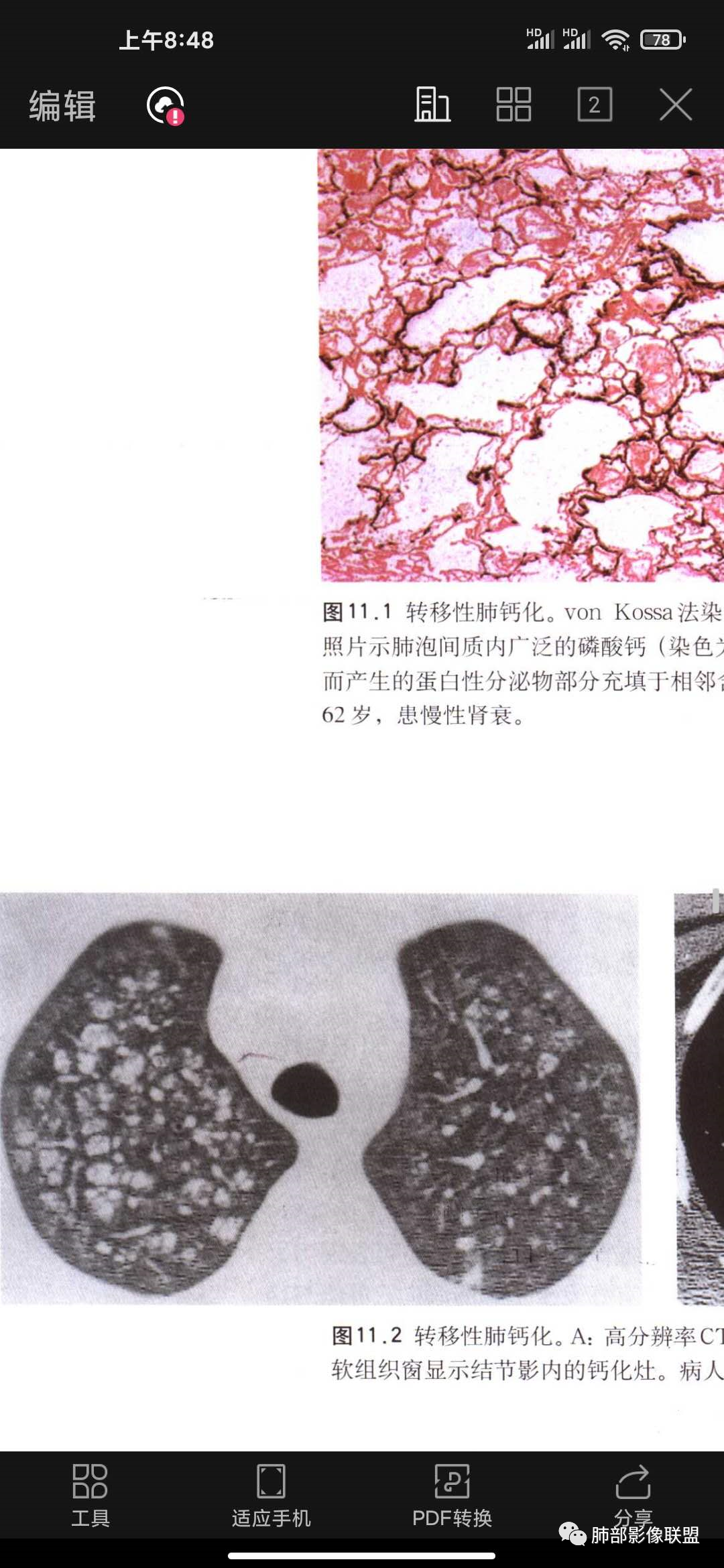 转移性钙化上叶显著,且小叶间隔增厚少见