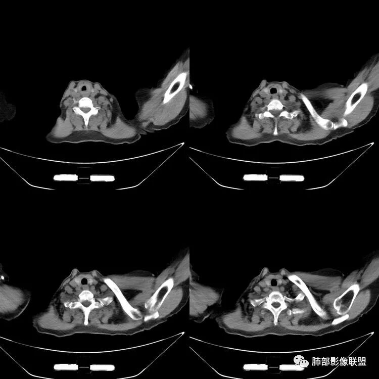 南边:肺部有肺气肿支气管腔狭窄淀粉样变性?复发性多软骨炎?血管炎?慢支?结核?曲霉菌?南边:一般还是淀粉样变性与复发性多软骨炎鉴别其次就是支气管骨化症,但是骨化下朝上,且壁结节状钙化明显,本例不太支持。至于结核、曲霉菌?1.结核,一般不会这么广泛,支气管壁狭窄后扩张2.曲霉菌可以这么广泛,但是支气管壁管腔扩张,而且附近脂肪间隙有炎性反应,不太支持;3.血管炎,一般合并肺内有病灶,但是声带受累,放待排;4.软骨炎一般全身受累,例如耳廓等;而且膜部不受累,不太支持;倾向于淀粉样变性;淀粉分很多型,气管支气管是最常见的。尘缘:影像上生理性钙化与支气管骨化无法区别,镜检也不好鉴别,需要依赖活检,看粘膜中是否合并炎性改变(淋巴细胞,组织细胞等炎性细胞侵润)来鉴别Coke with ice:经常看到的这种是老年性肺改变,又称年龄相关肺改变。气管和支气管弥漫性软骨钙化,常见老年女性。尘缘:支气管骨化症很罕见的,所以绝大多数还是生理性钙化。对于老年人,无临床症状的钙化,还是基本上都是生理性钙化,无临床意义。大雄:如果管壁钙化伴明显增厚 影像还是提示一下建议支气管镜稳妥些