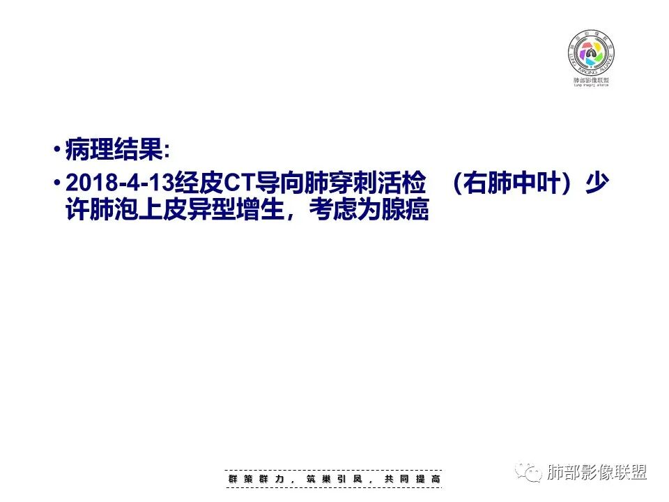 Yishion: 时间跨度虽然大,但原病灶增大,常规需要考虑恶性肿瘤,支气管截断,不符合淋巴瘤,时间太长,说明病灶相对生长过慢,如果是鳞癌,一般破坏力很强,8年时间很难支撑得下来,常规考虑腺癌
