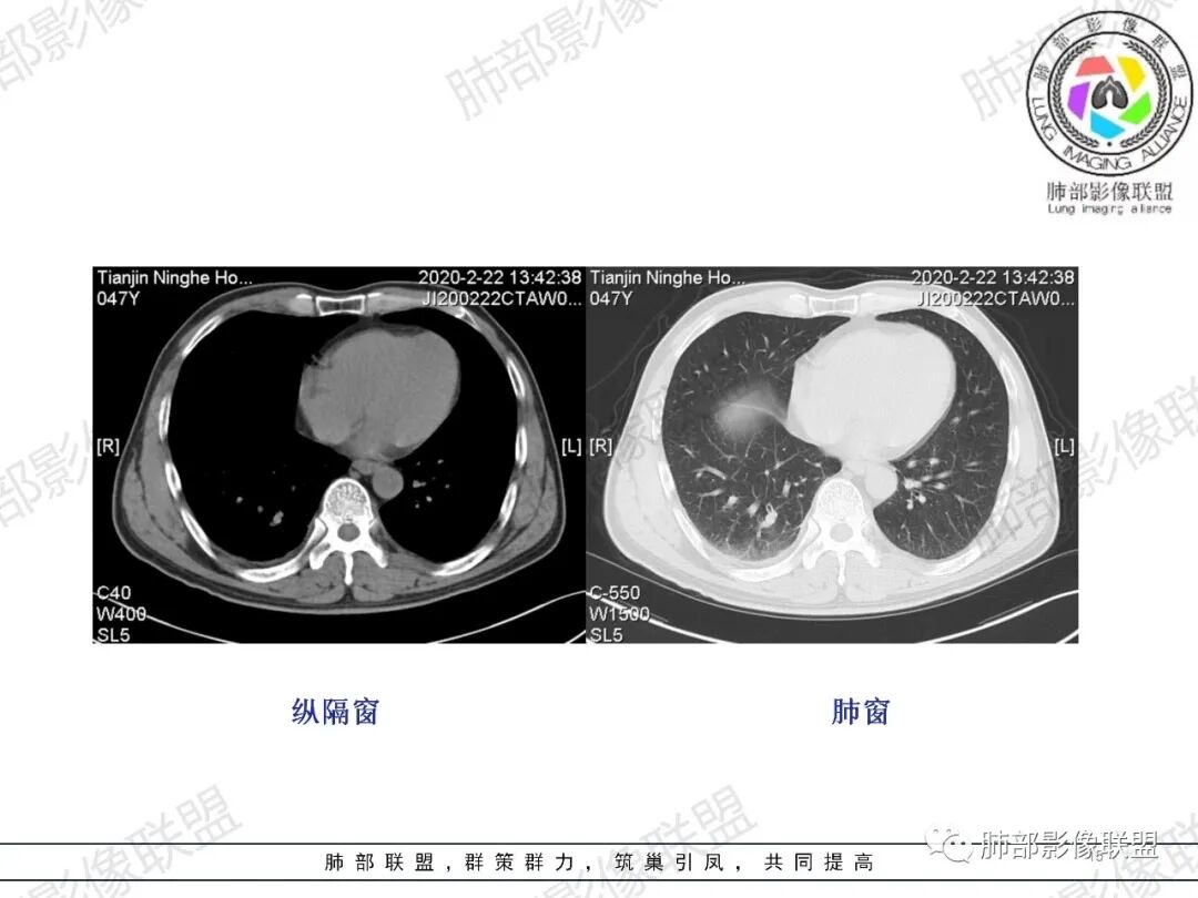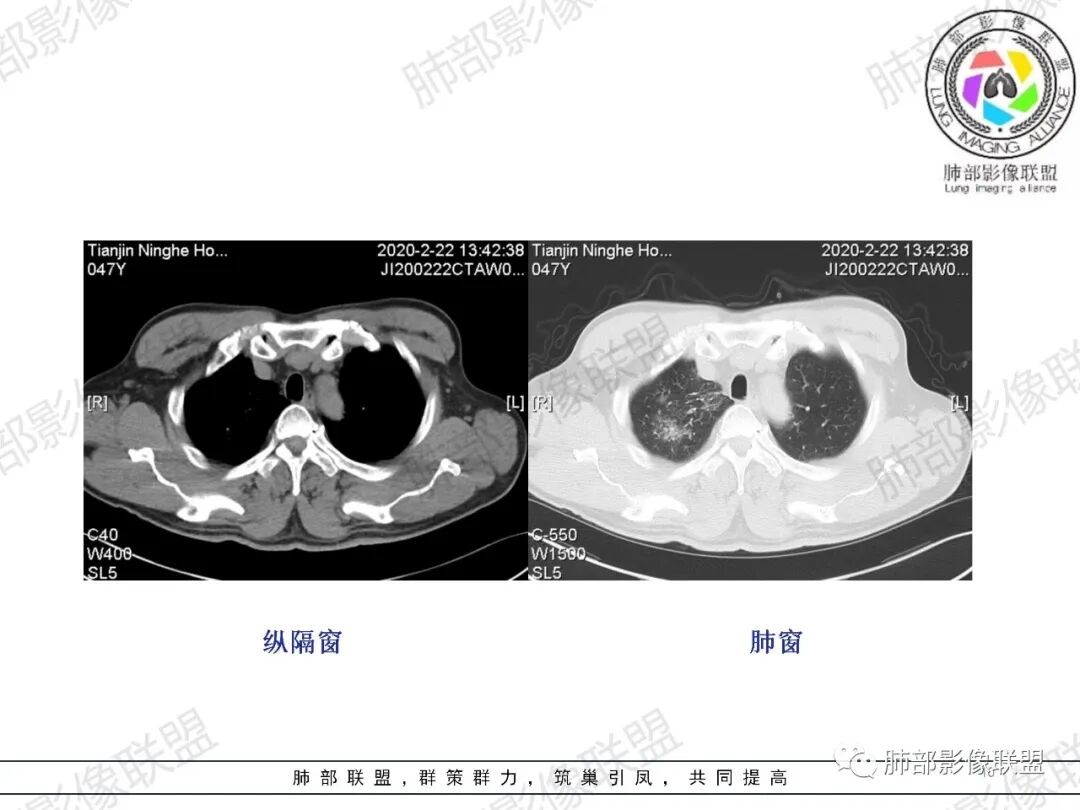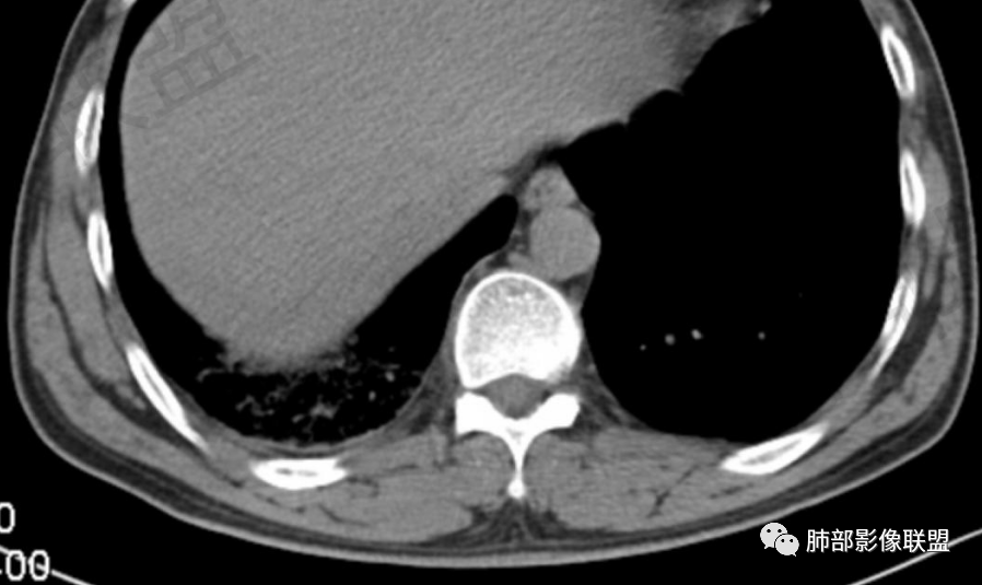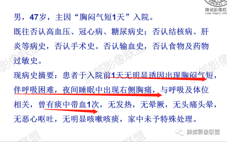 小锁:中年男性患者,急性起病,胸闷气喘伴有胸痛,低热,低氧,白细胞增高。CT:右肺上叶斑片状稍高密度影,粟粒样树芽征,有钙化,考虑继发性结核;右肺下叶肺动脉增粗,溶冰征,提示血管来源病变,结合临床病史,考虑肺栓塞。