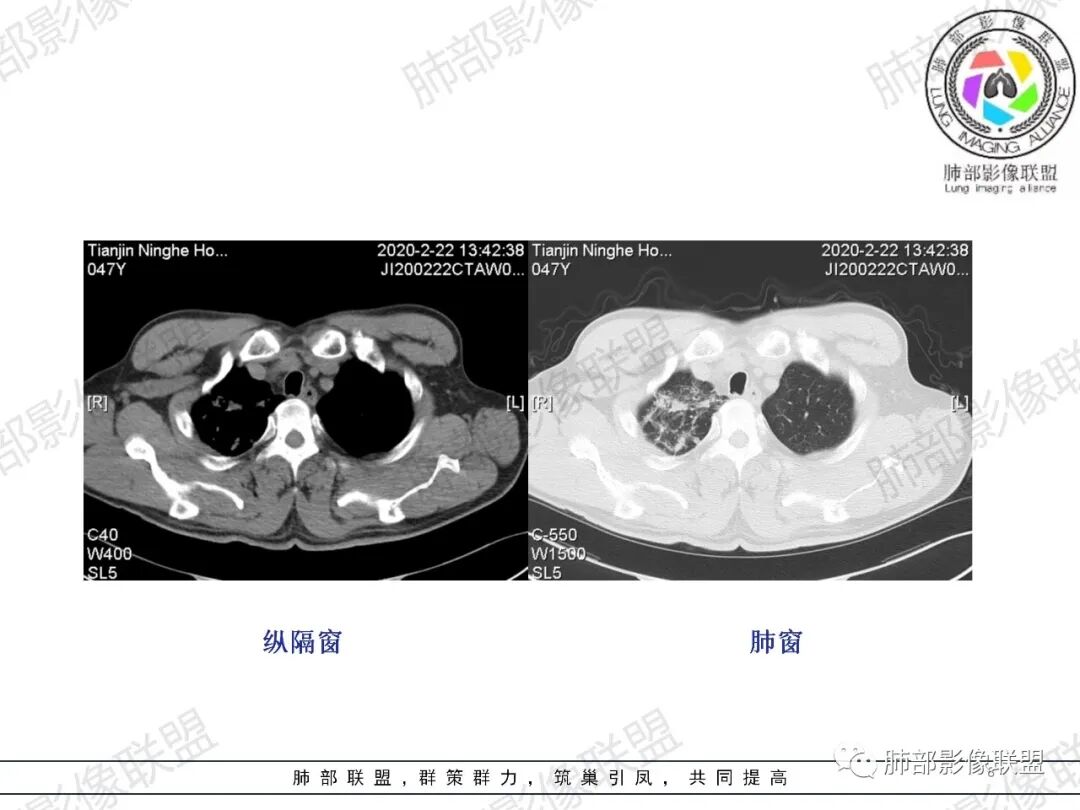 右上叶,多灶性、多态性,烟花征,结核应该没问题
