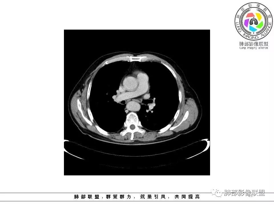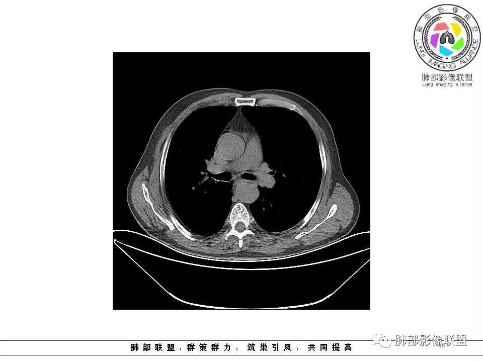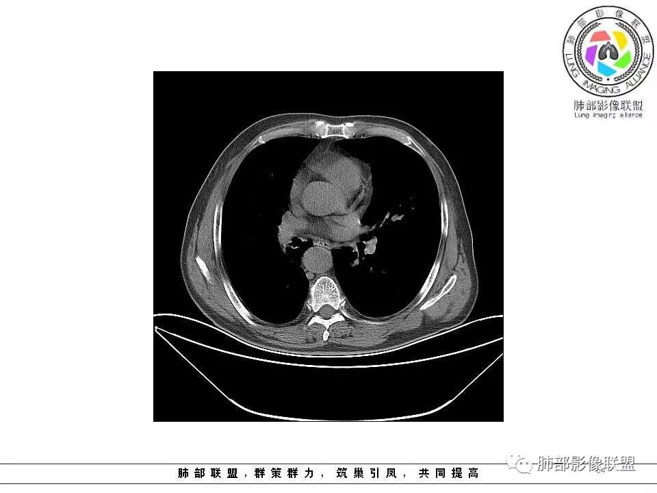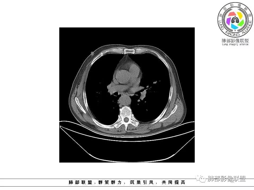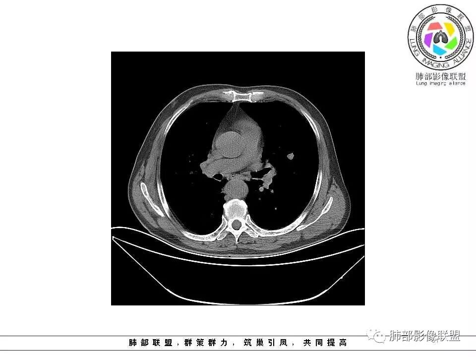 @南边 我觉得最关键的是两个问题,一是腔内堵塞这个结节的纵隔窗看不到,所以到底是不是结节样肿物不明确,第二个就是没有增强,这个腔内病变与周围结节的强化性质是否一致,强化程度及强化曲线如何?